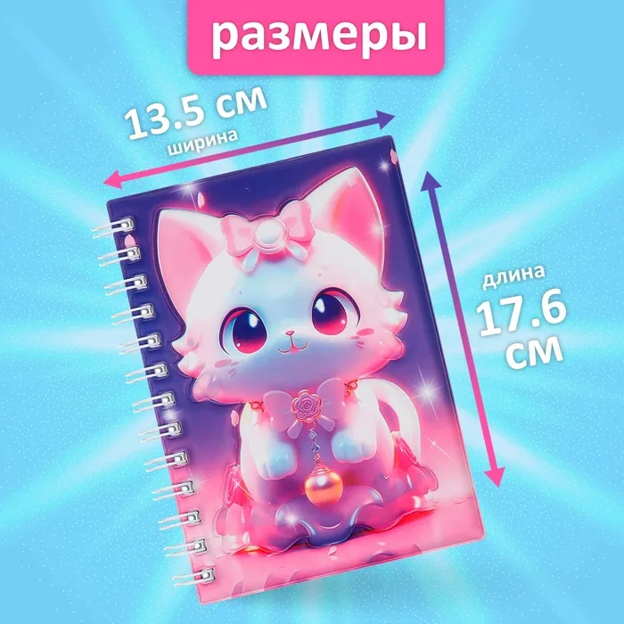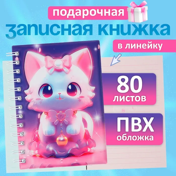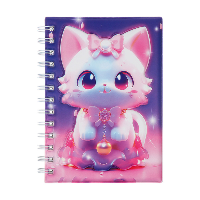 Записная книжка подарочная на гребне 80л,линия, цветной блок,обложка ПВХ 3D Кошка(17,6х13,5см) 105 — Характеристики