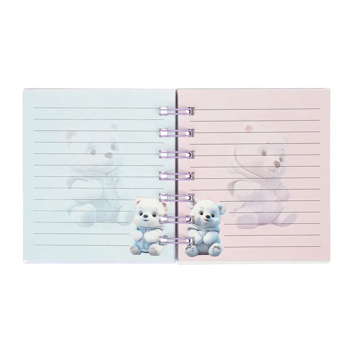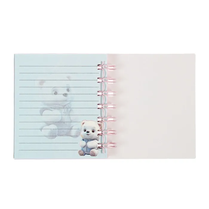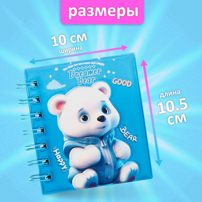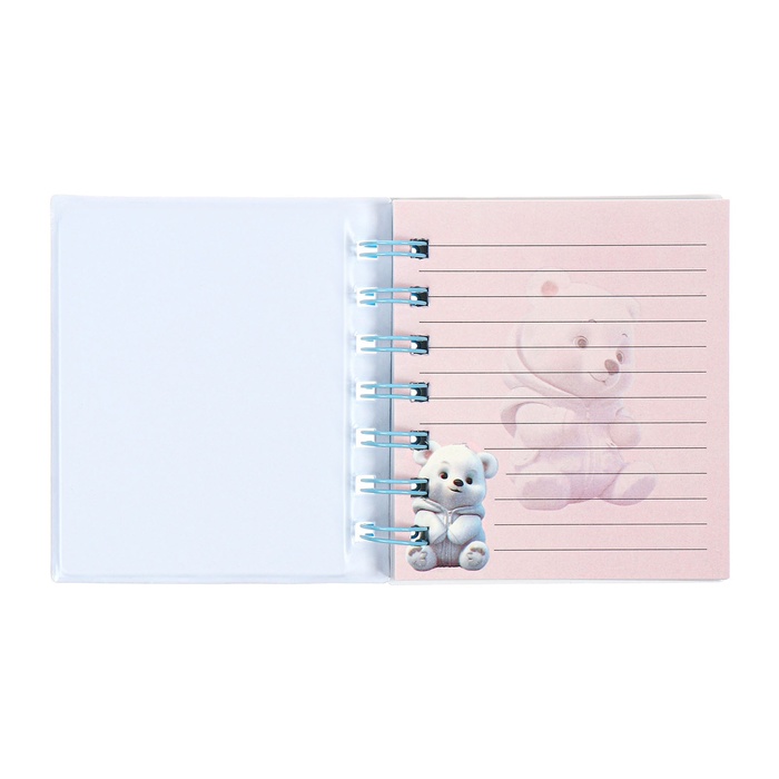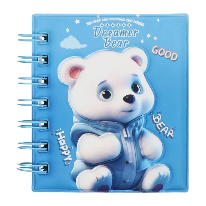 Записная книжка подарочная на гребне 80л,линия, цветной блок,обложка ПВХ 3D Мишка(10х10,5см) 10539 — Характеристики