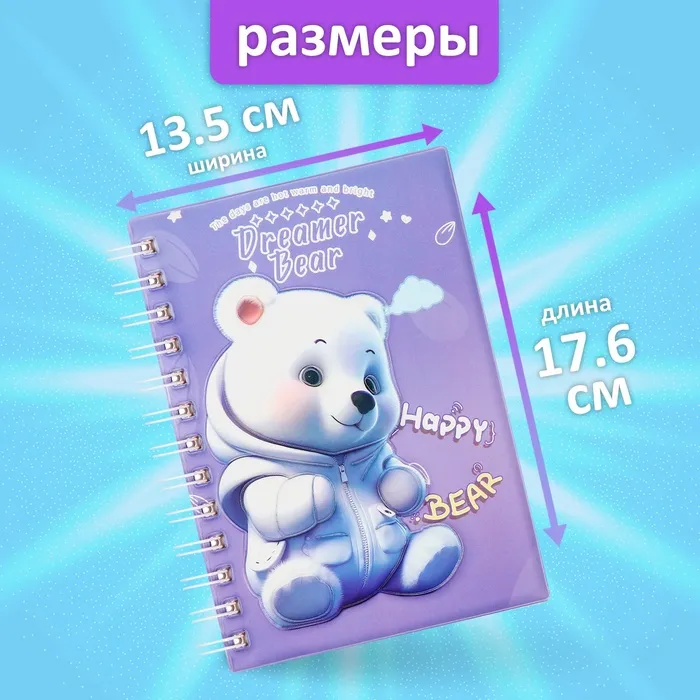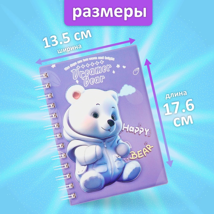 Записная книжка подарочная на гребне 80л,линия, цветной блок,обложка ПВХ 3D Мишка(17,6х13,5см) 105 — Характеристики