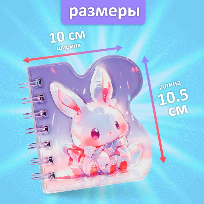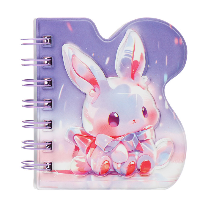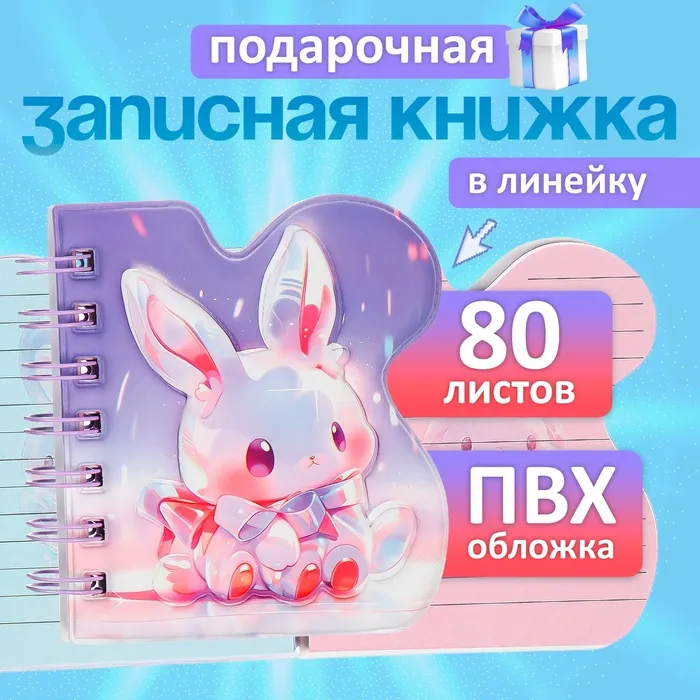 Записная книжка подарочная на гребне 80л,линия, цветной блок,обложка ПВХ 3D Зайка(10х10,5см) 10539 — Характеристики