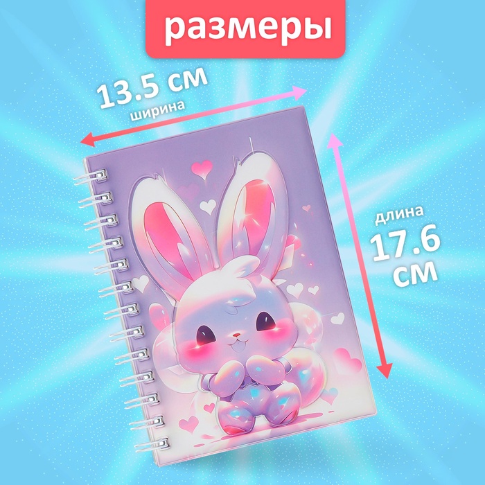 Записная книжка подарочная на гребне 80л,линия, цветной блок,обложка ПВХ 3D Зайка(17,6х13,5см) 105 — Характеристики