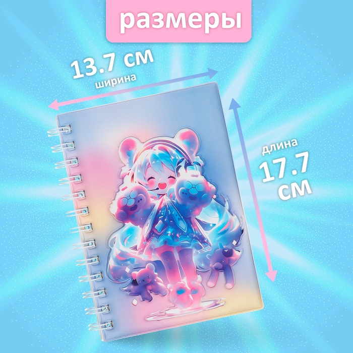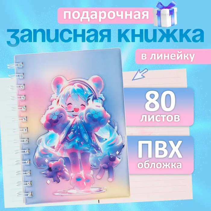 Записная книжка подарочная на гребне 80л,линия, цветной блок,облож.ПВХ 3D Аниме(17,7х13,7см) 10539 — Характеристики