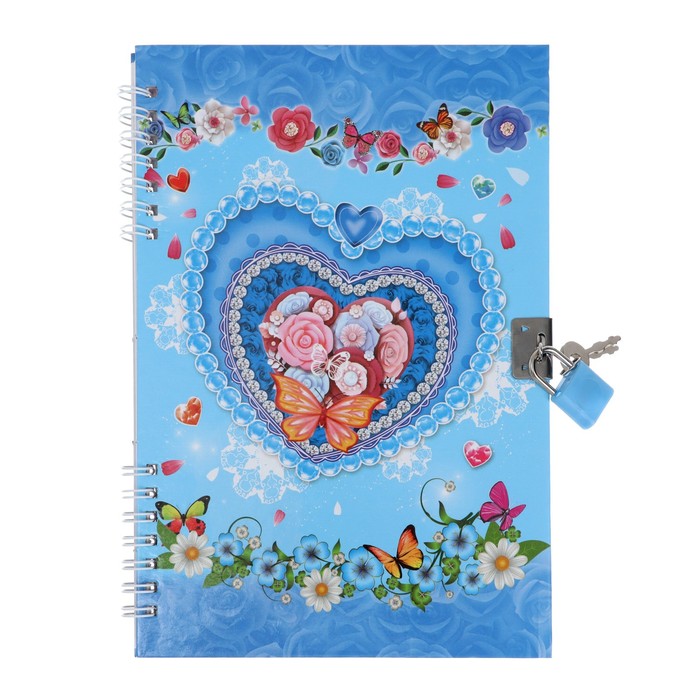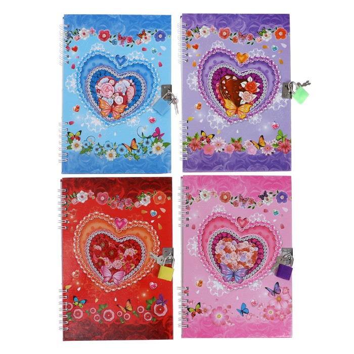 Записная книжка подарочная на замочке, А5, 50 листов, линия, "Цветочки", МИКС — Характеристики