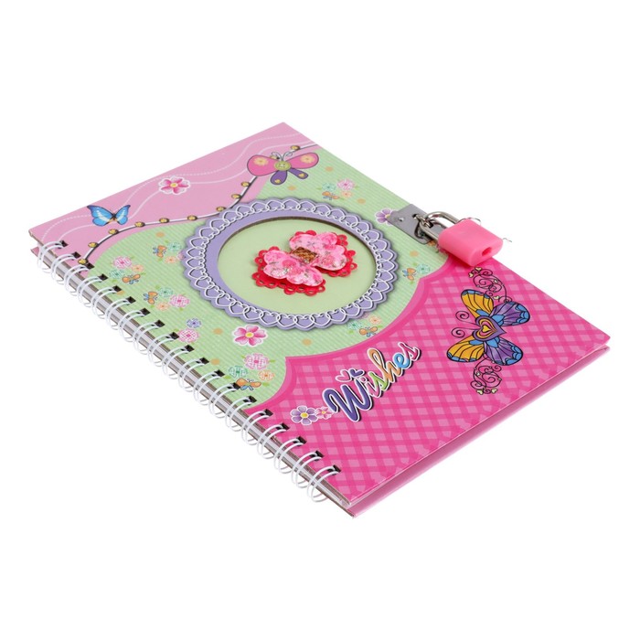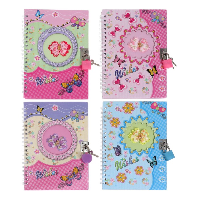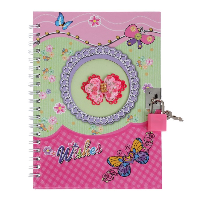 Записная книжка подарочная на замочке, А6+, 50 листов, линия, "Бабочка", МИКС — Характеристики