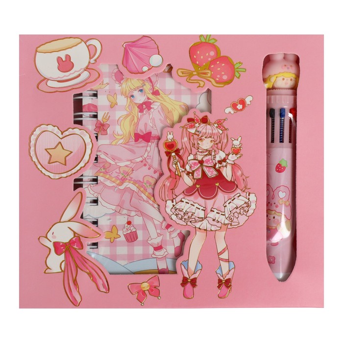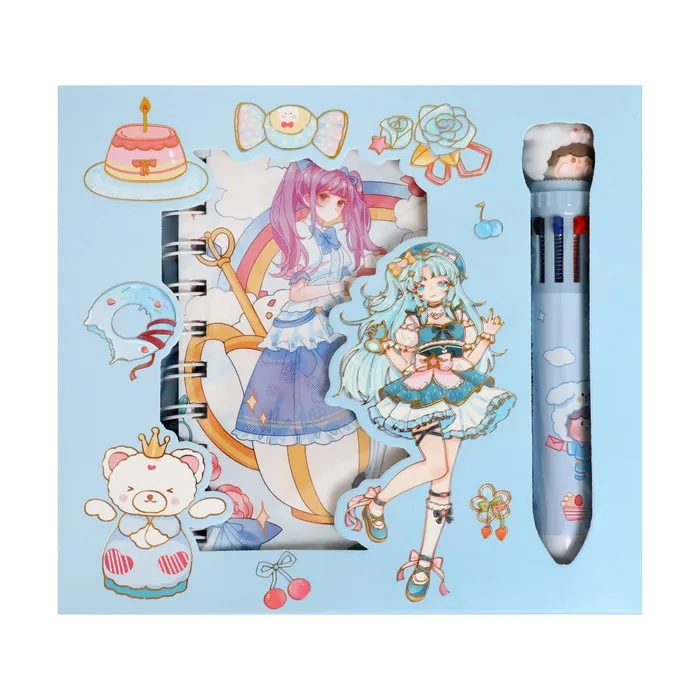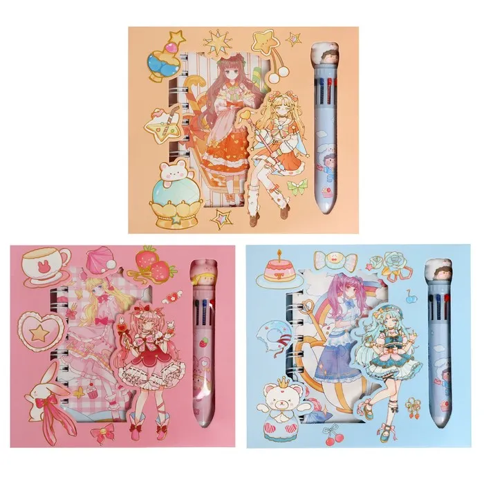 Записная книжка в подарочной коробке, А6, 50 листов, ручка шариковая 10-цветов «Аниме», МИКС — Характеристики