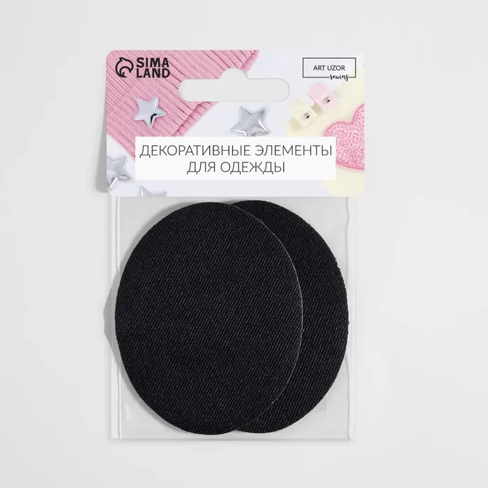 Заплатки для одежды, 7 × 5,5 см, термоклеевые, пара, цвет чёрный — Характеристики