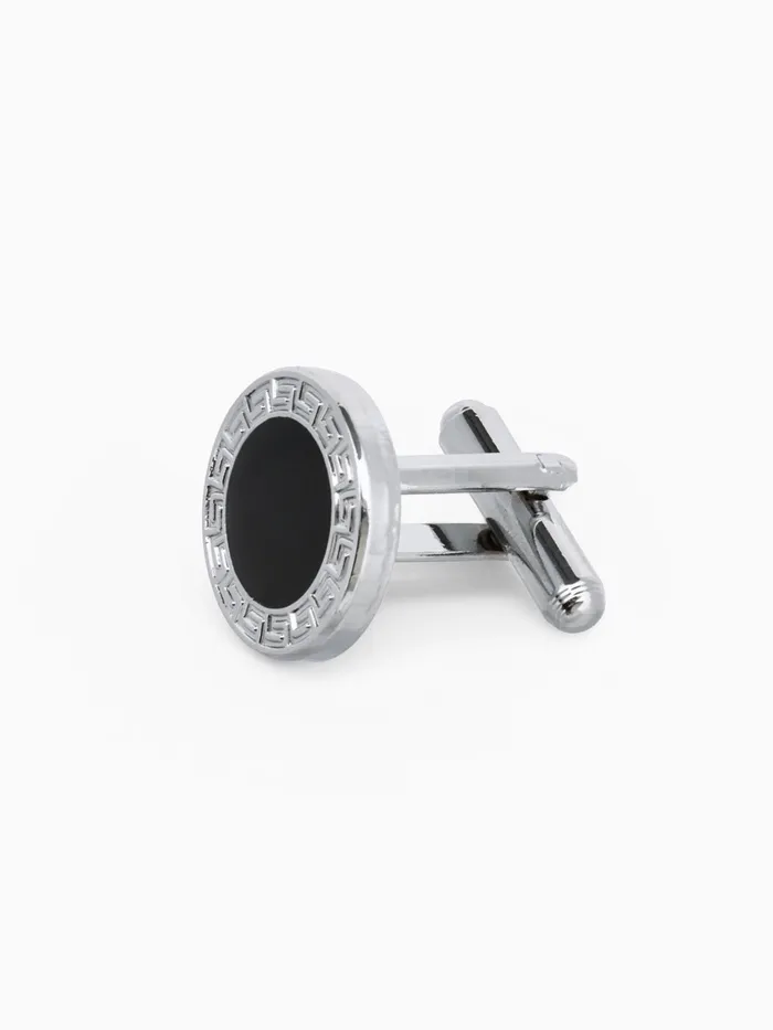 Запонки «Классика» круг с эмалью, окантовка с орнаментом, чёрные, серебре — Характеристики