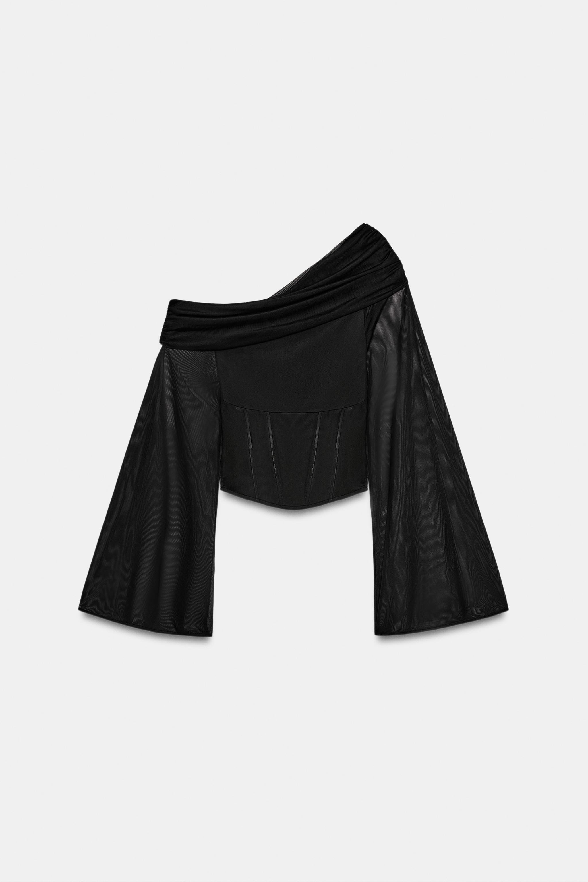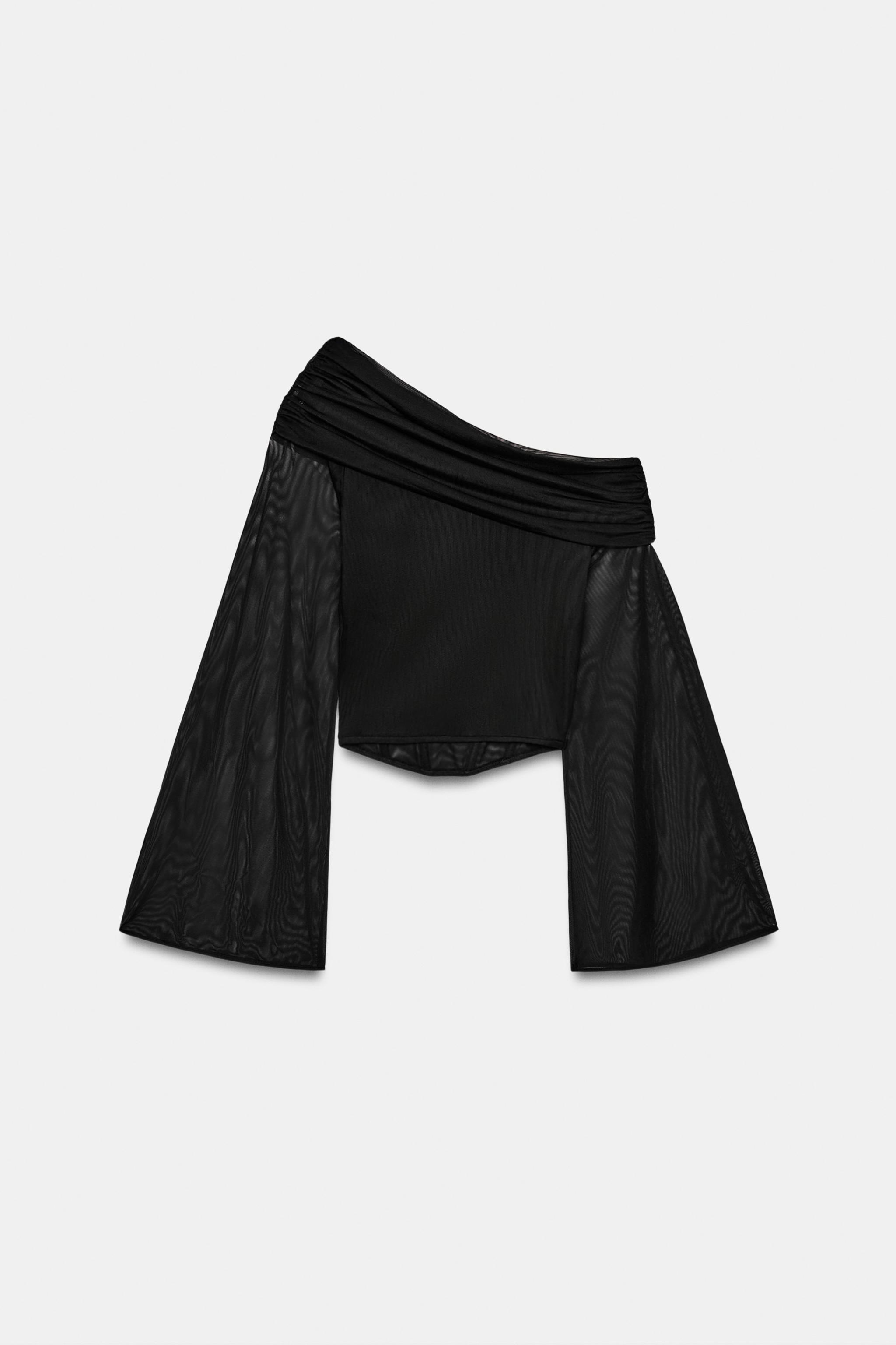 АСИММЕТРИЧНЫЙ ТЮЛЕВЫЙ ТОП С ниспадающим низом