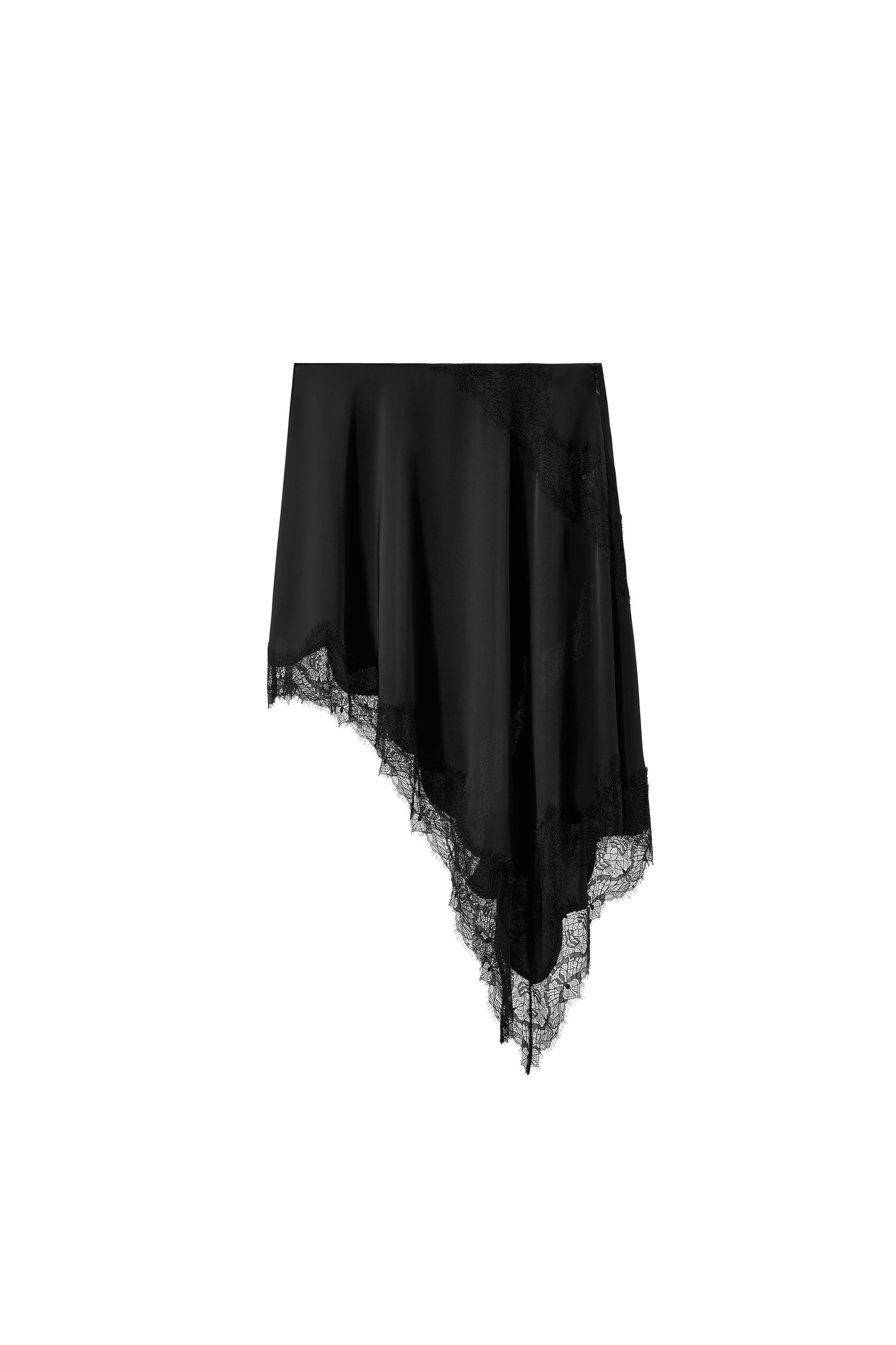 Атласная асимметричная кружевная юбка