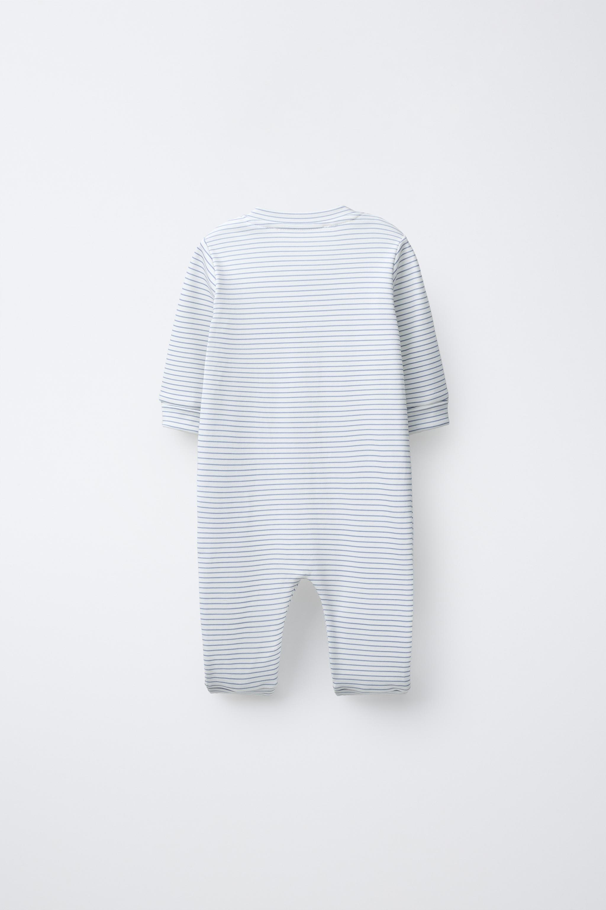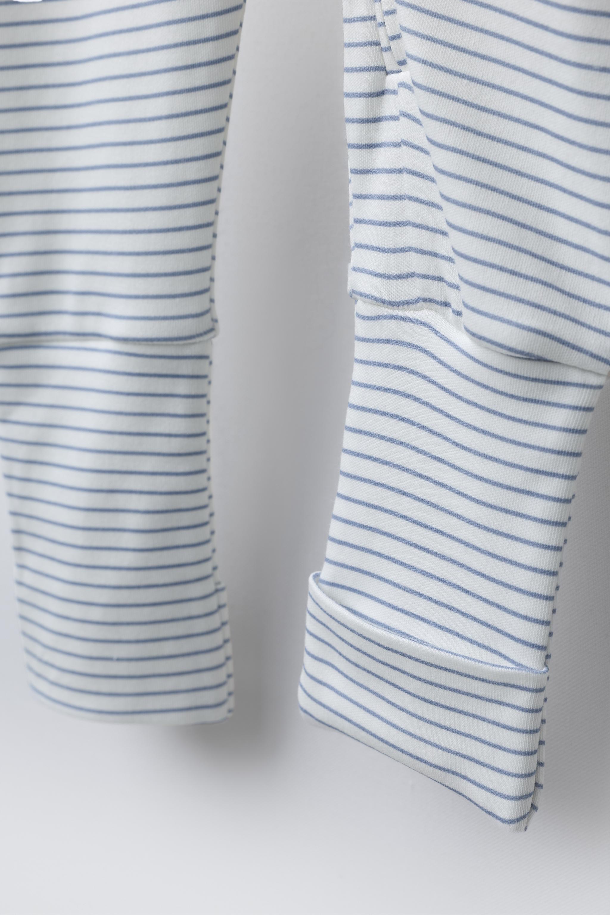 Размеры: 0-1 месяцев (56 см), 1-3 месяца (62 см), 3-6 месяцев (68 см), 6-9 месяцев (74 см), 9-12 месяцев (80 см), 12-18 месяцев (86 см) | Цвета: Экрю / Синий