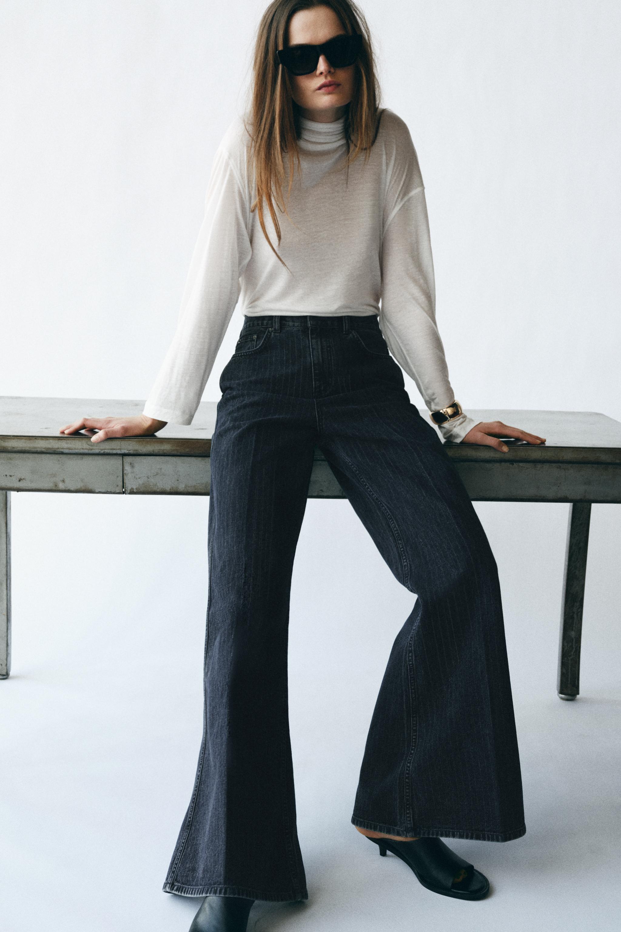 Джинсы trf широкий ремень по ногу высокий ремень