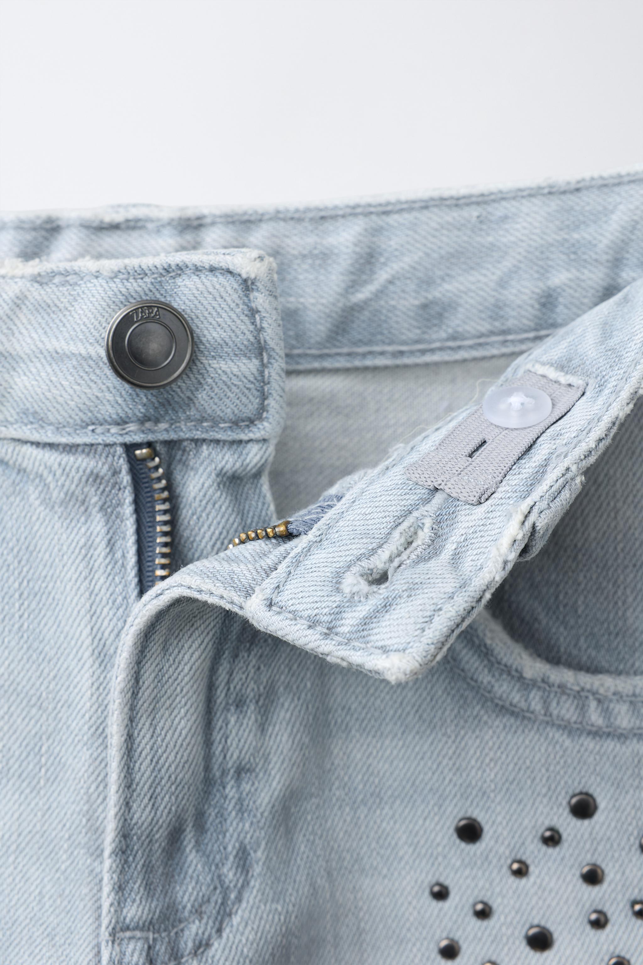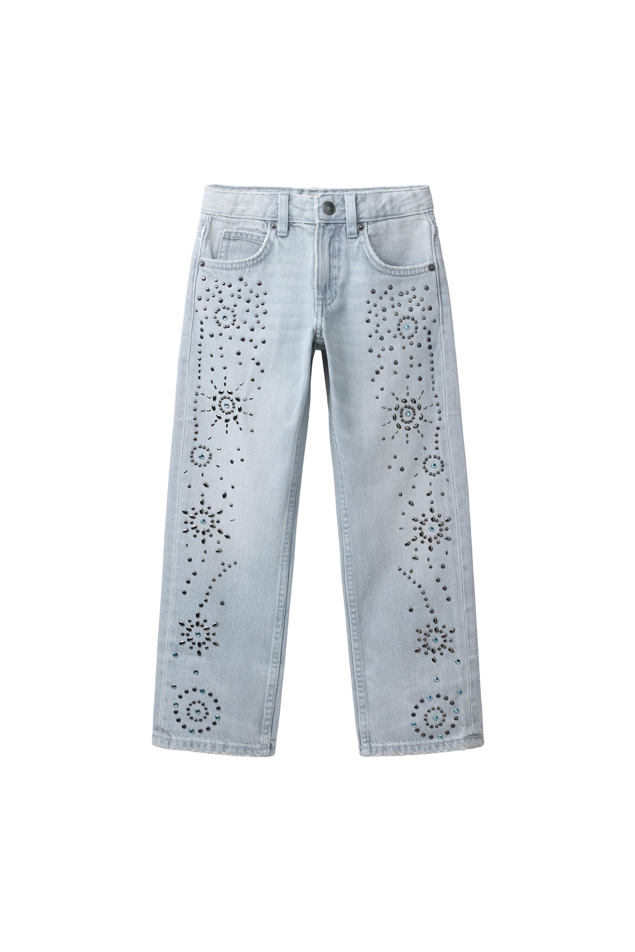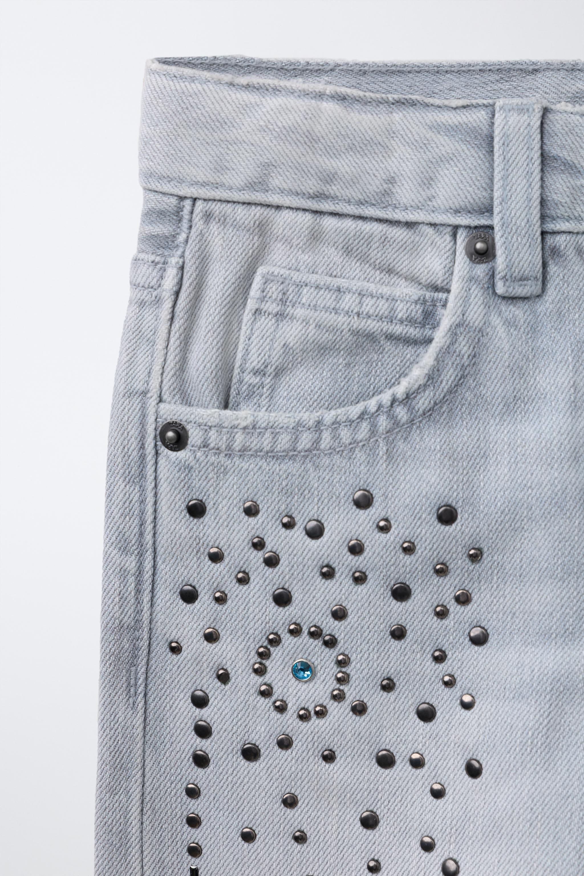 Джинсы с заклепанными широкими ногиами