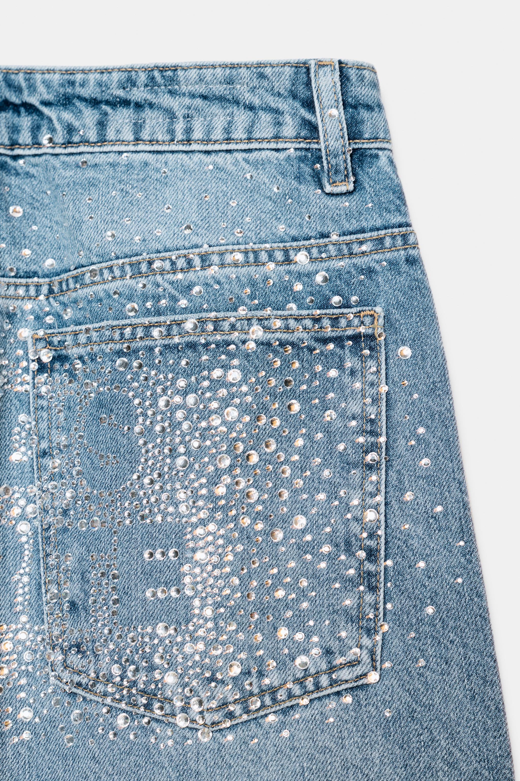 Джинсы trf прямые с пайетками нормальный ремень