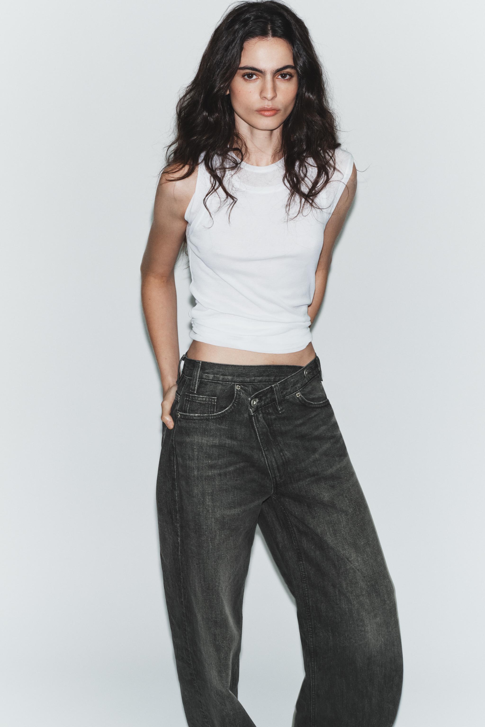 Джинсы trf широкий ремень по ногу высокий ремень