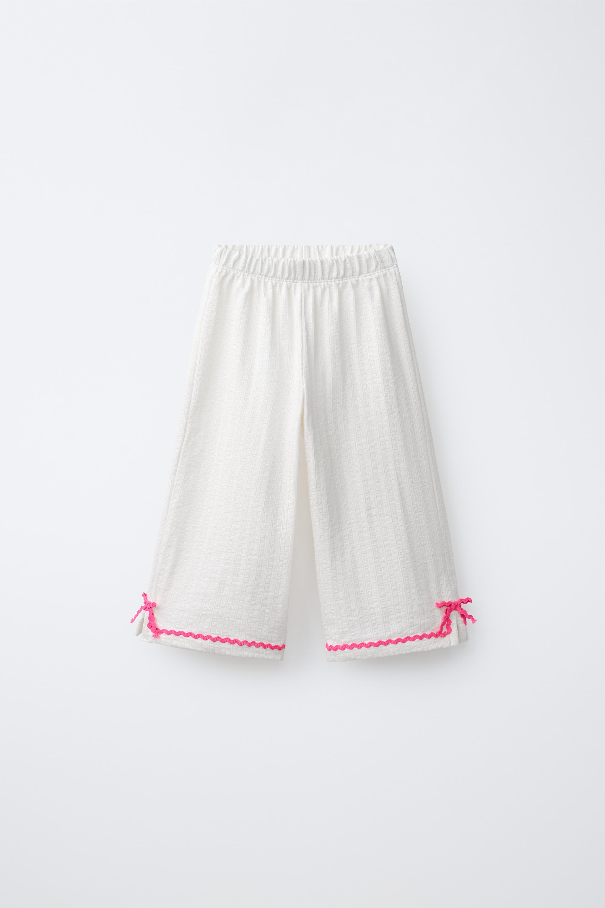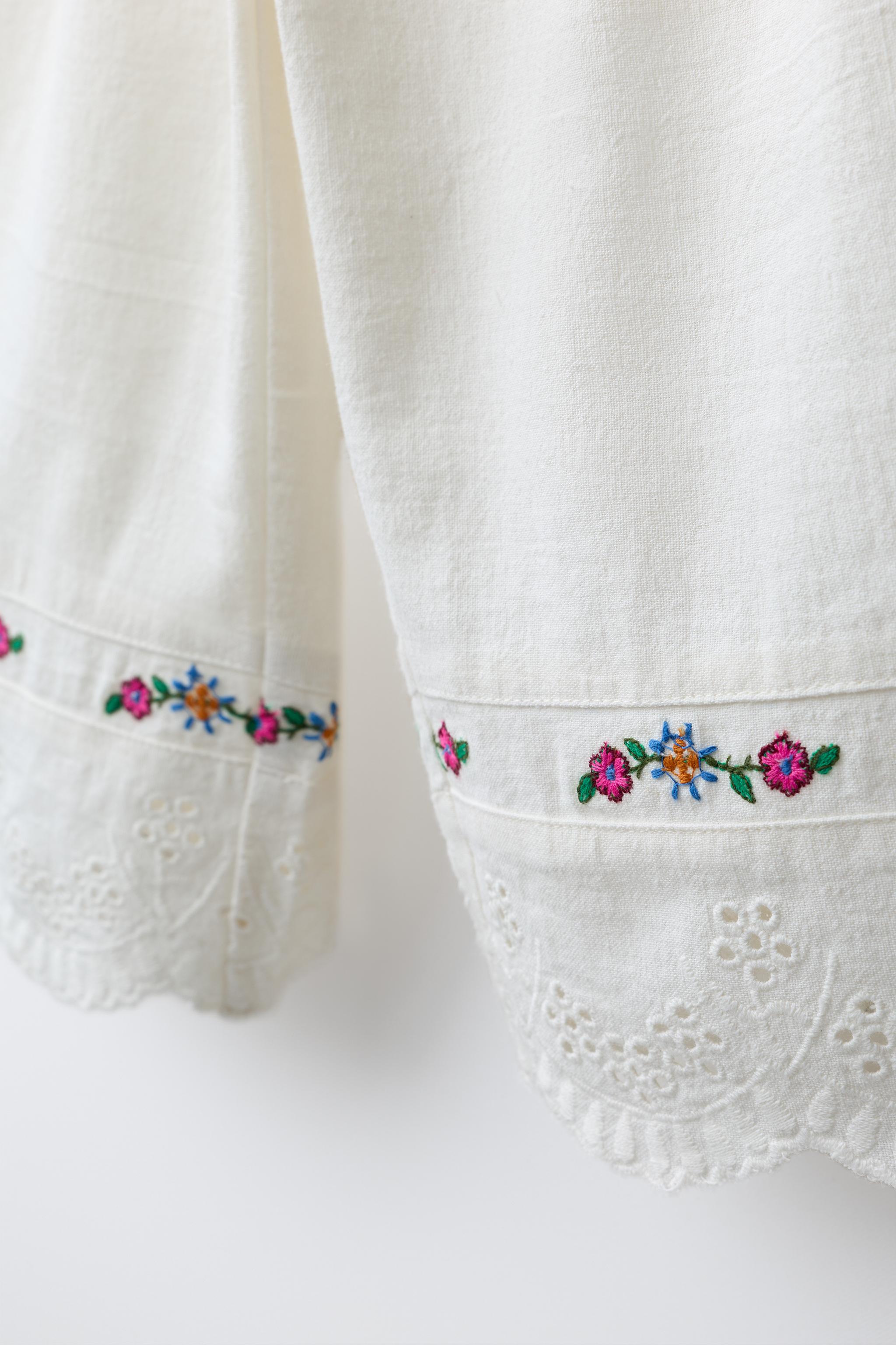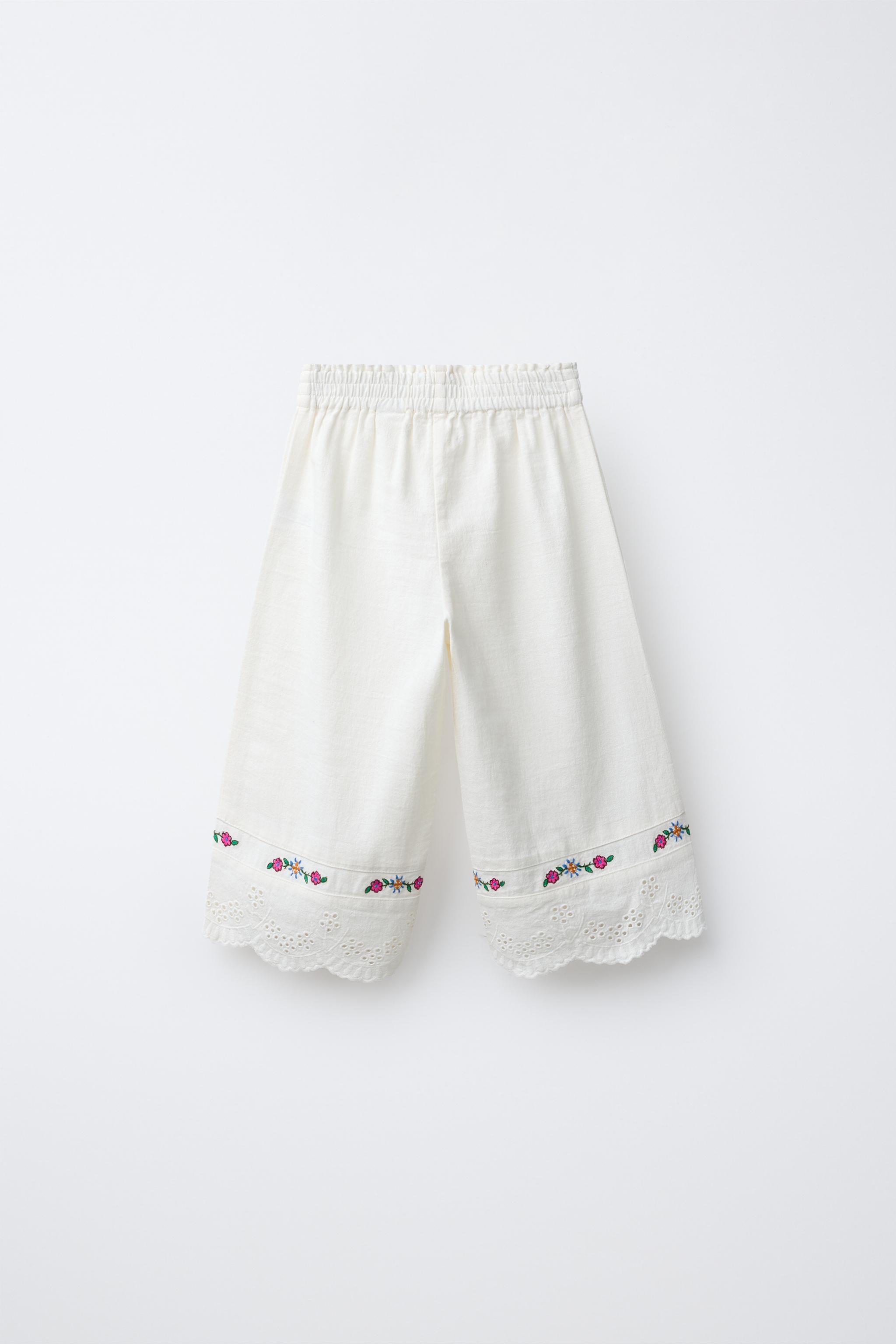 Хлопковые льняные кюлоты с цветочной вышивкой