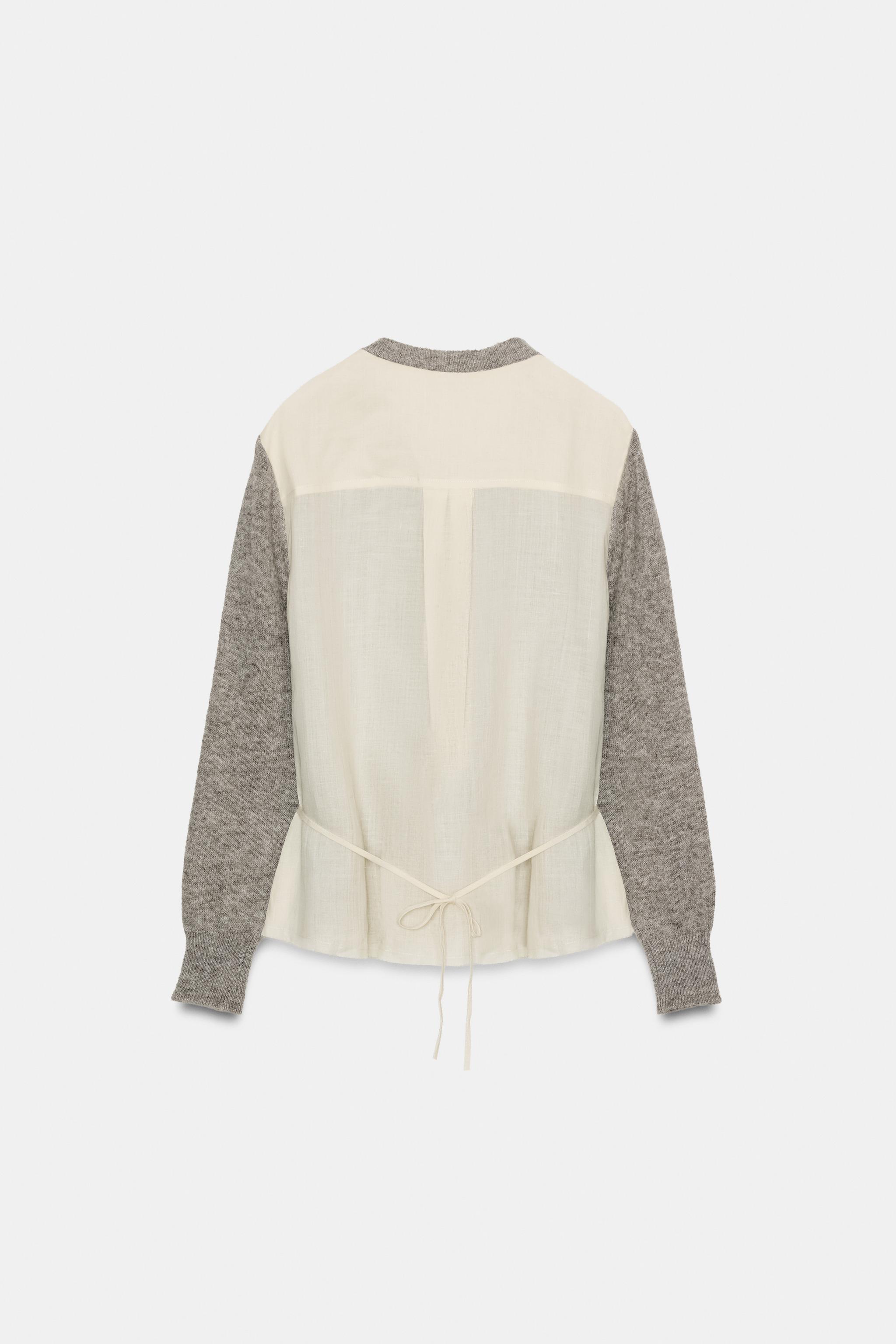 Комбинированная трикотажная куртка с поясом