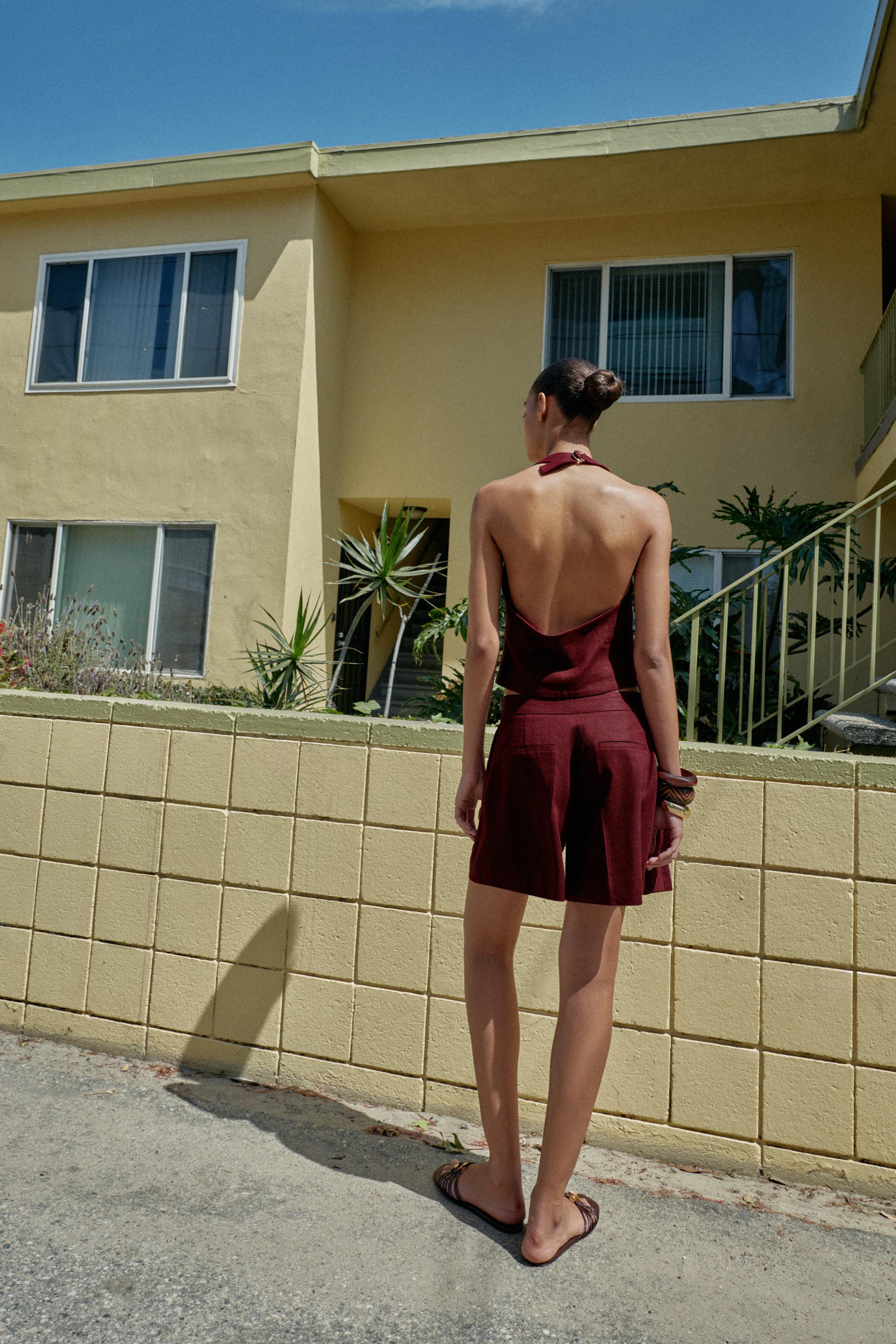 Льняные шорты со складками