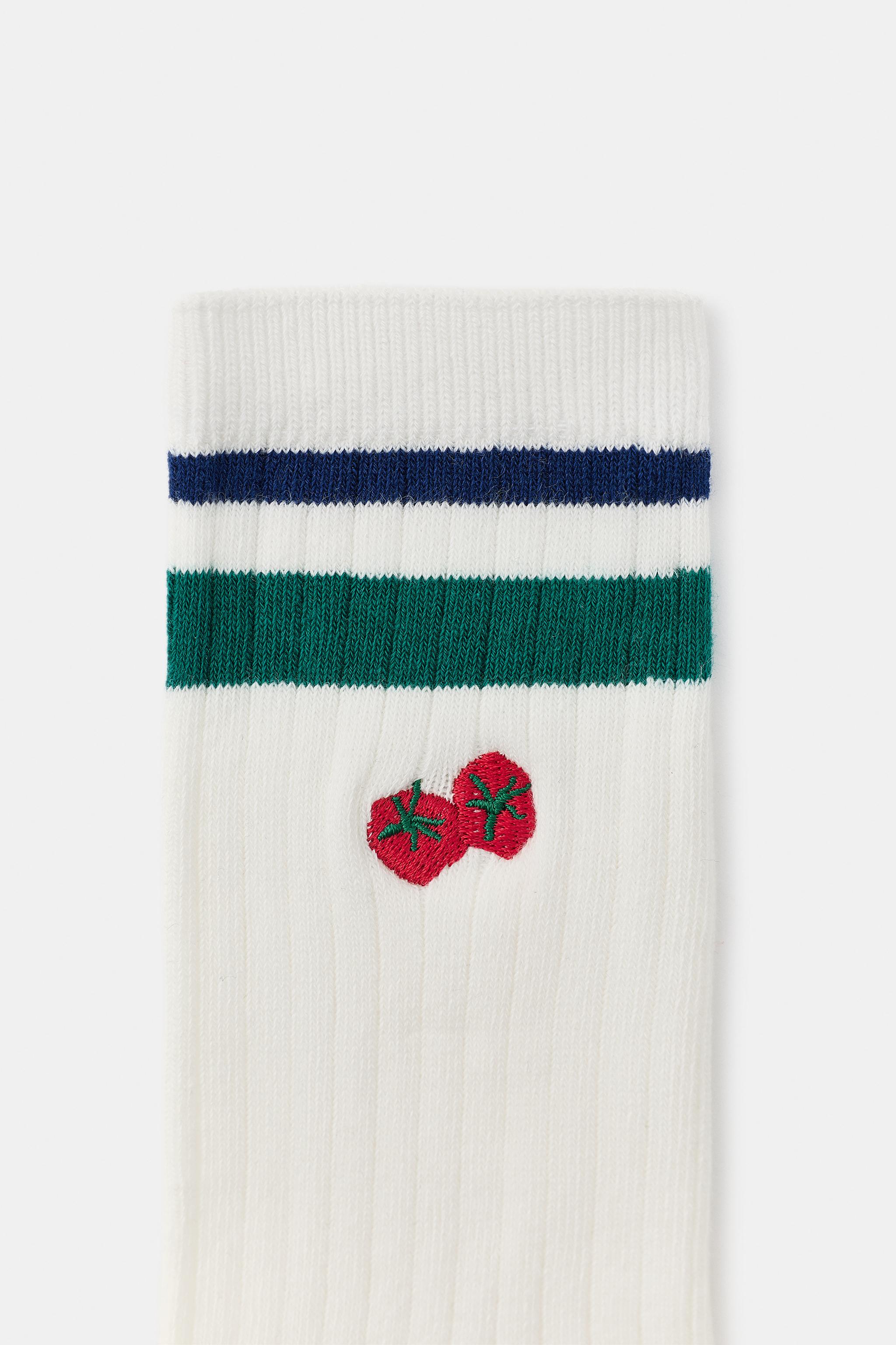 Носки в полоску с принтом помидоров