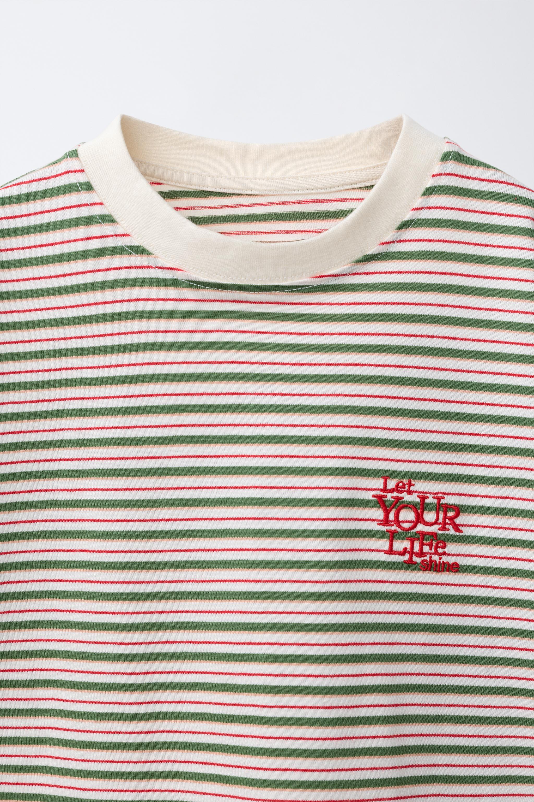 Полоская футболка с написанным текстом
