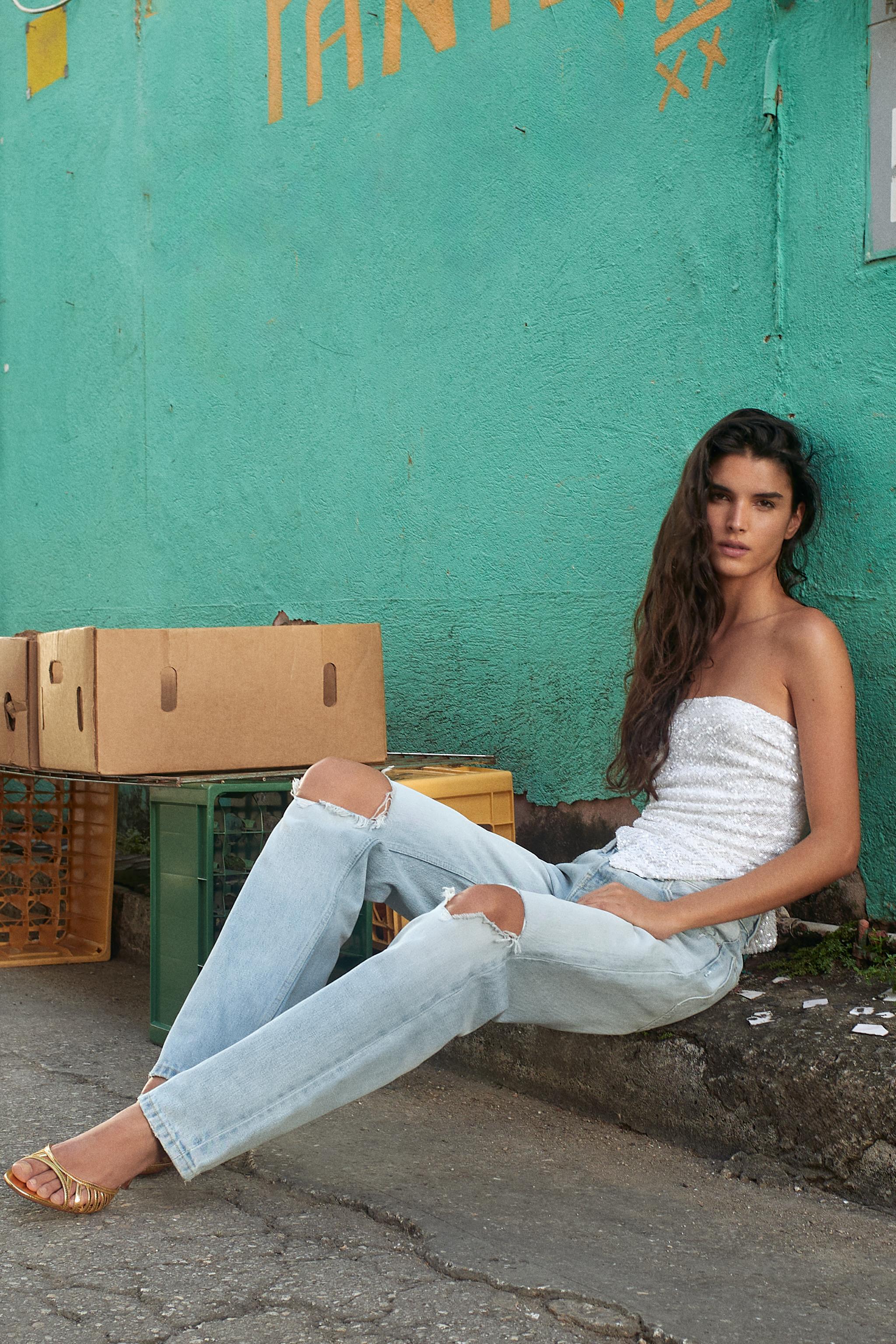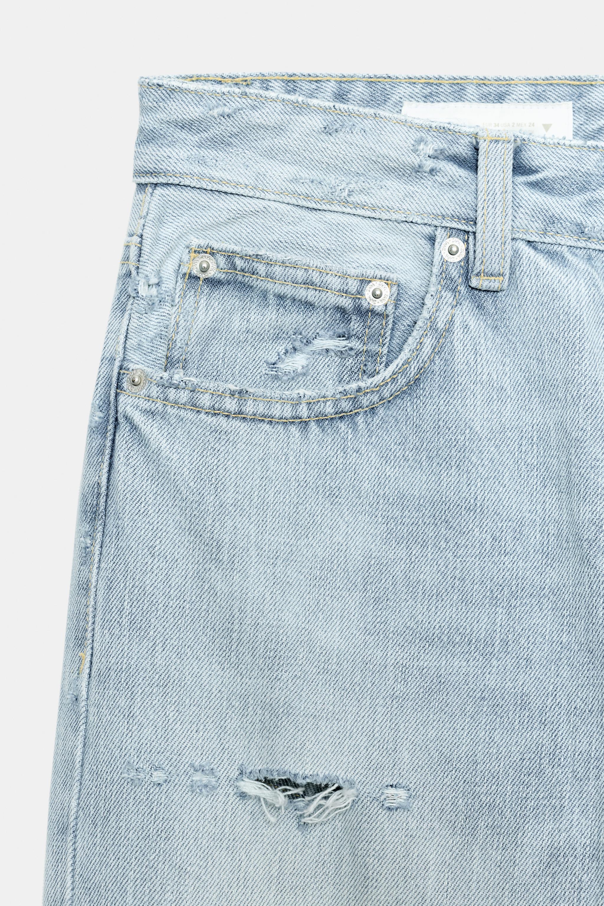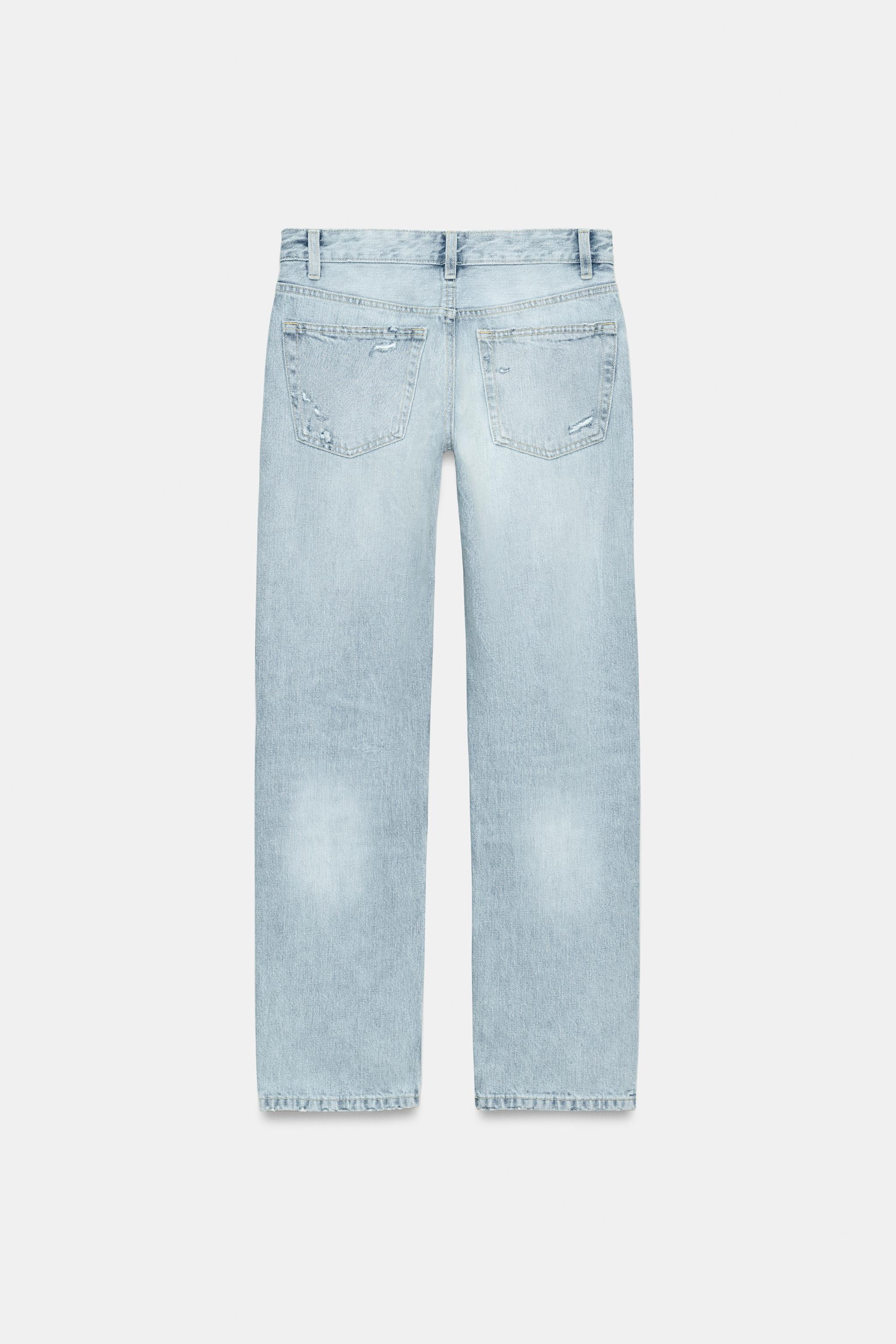 Прямые джинсы с низкой посадкой и разрывами
