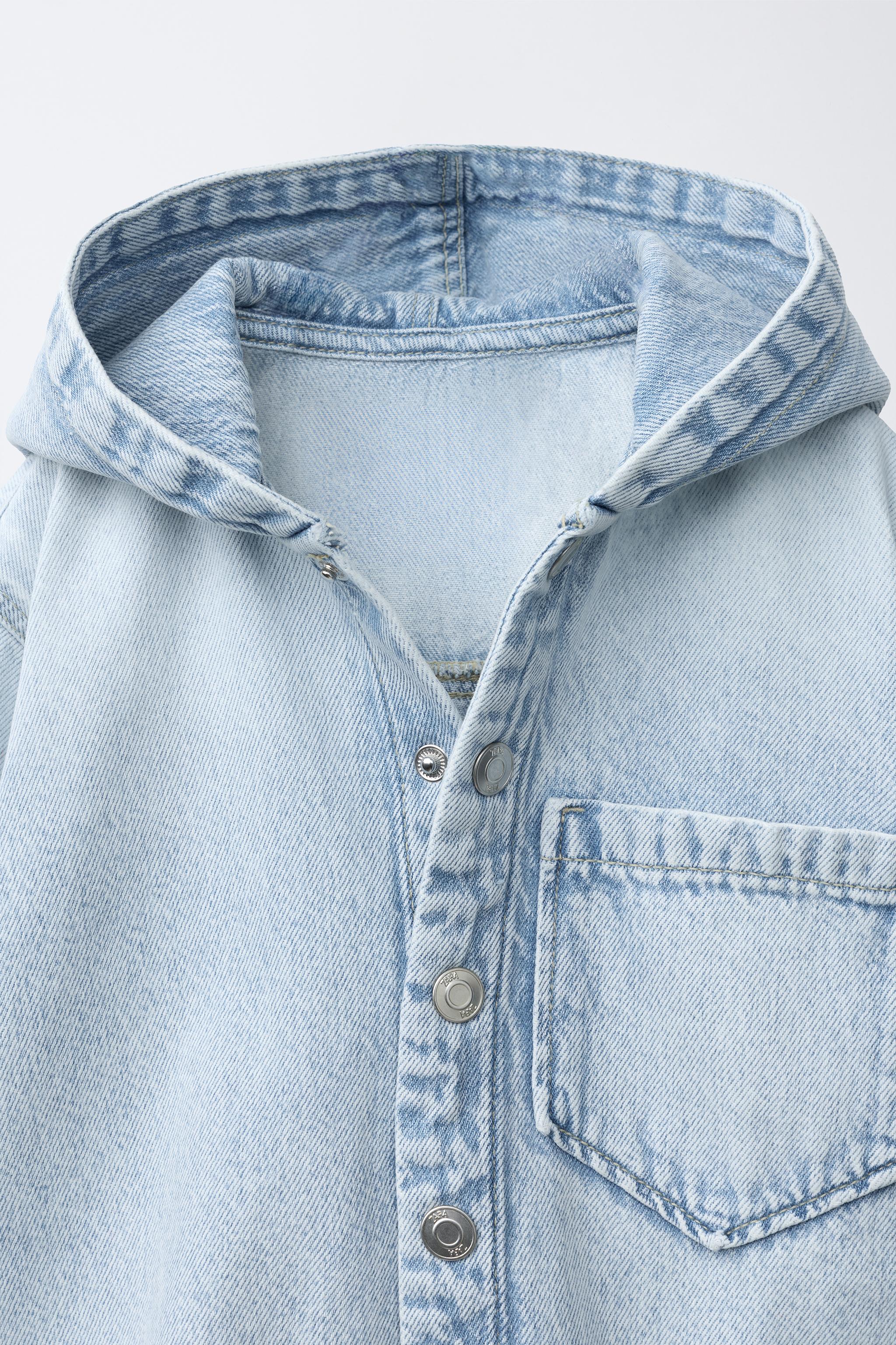 Рубашка из джинсовой ткани с капюшоном