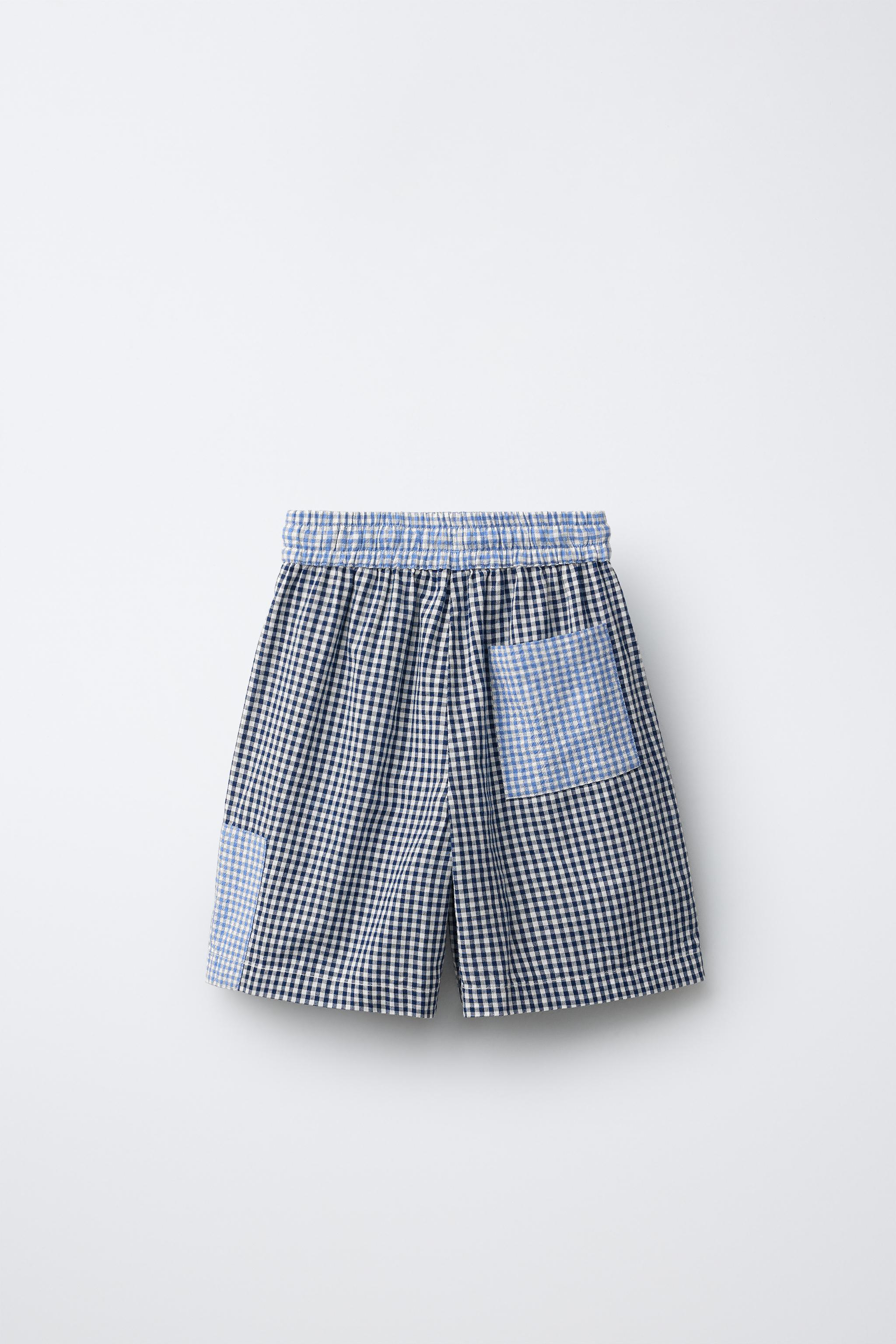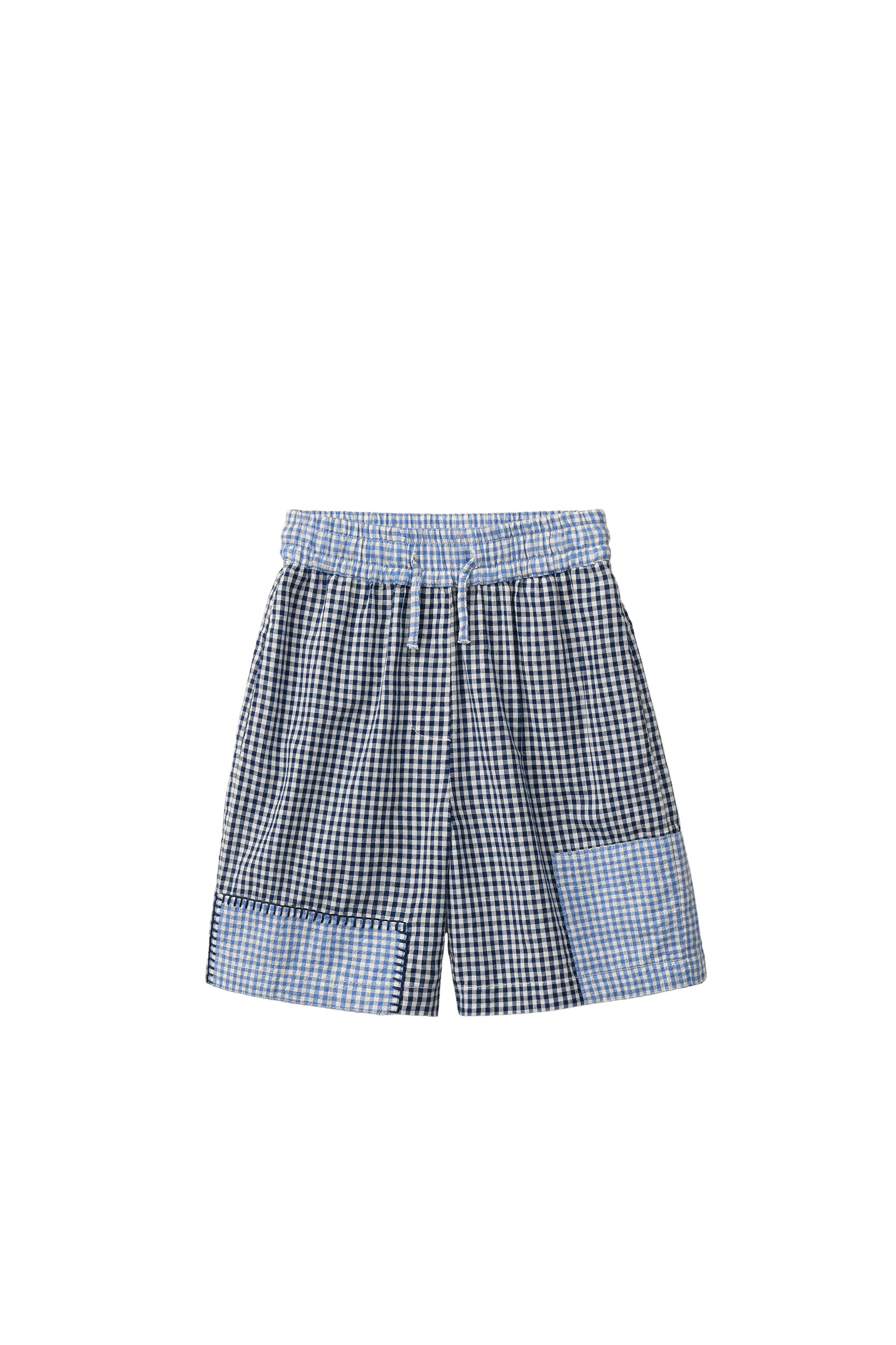 Шорты бермуды в клеточку с нашивками