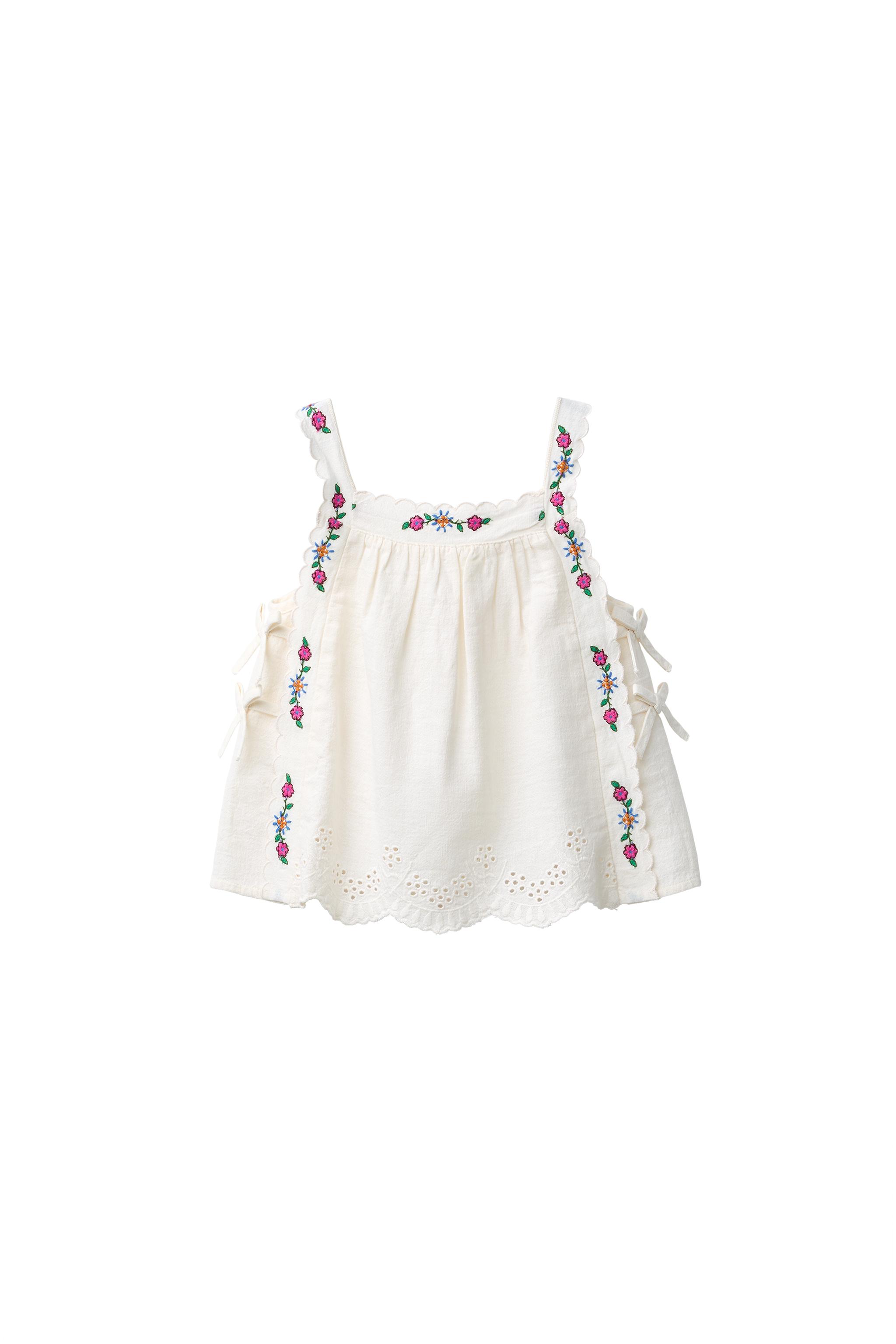 Топ из хлопкового льна с принтом цветов