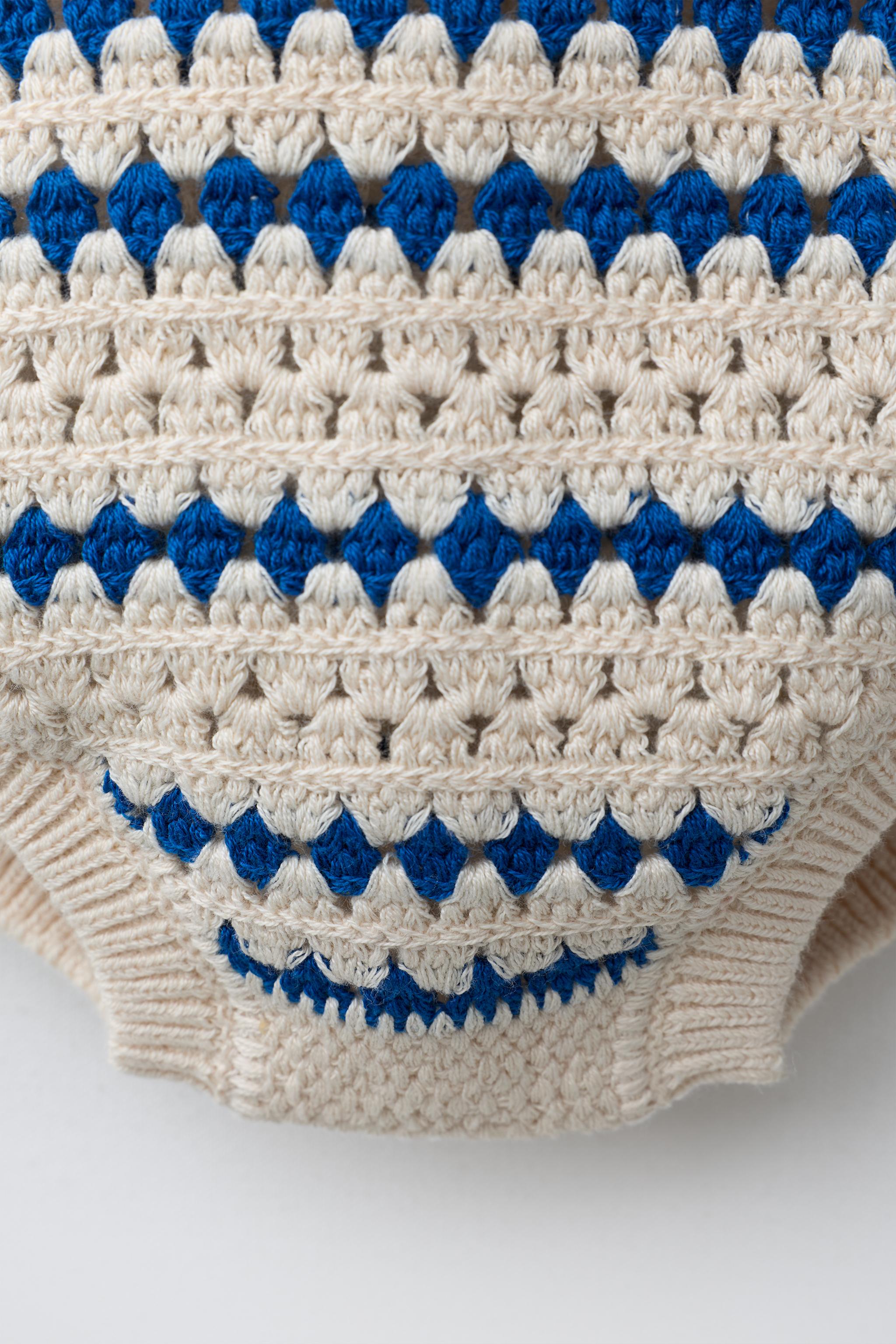 Размеры: 3-6 месяцев (68 см), 6-9 месяцев (74 см), 9-12 месяцев (80 см), 12-18 месяцев (86 см) | Цвета: Экрю / Синий