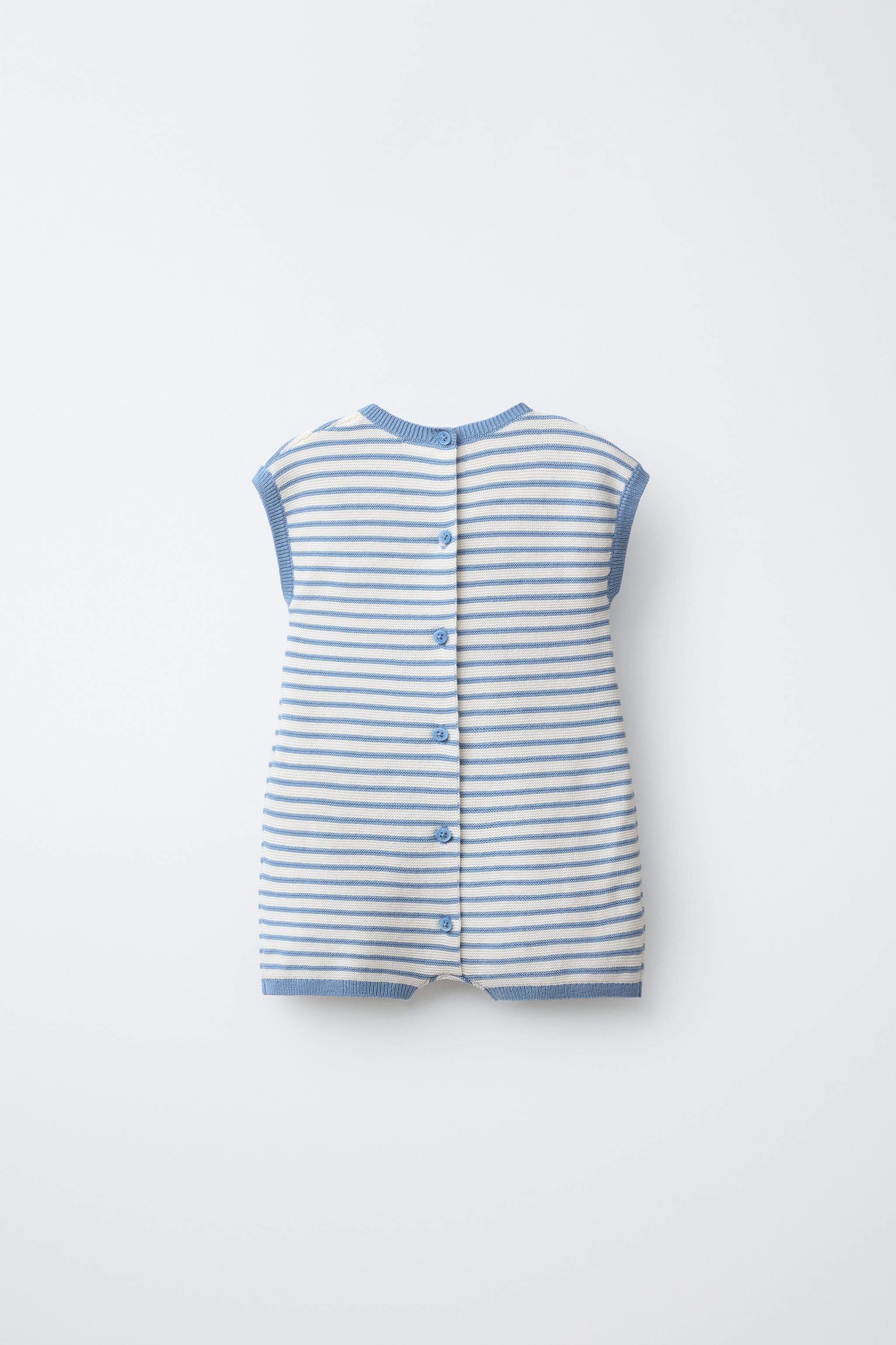 Размеры: 0-1 месяцев (56 см), 1-3 месяца (62 см), 3-6 месяцев (68 см), 6-9 месяцев (74 см) | Цвета: Экрю / Синий