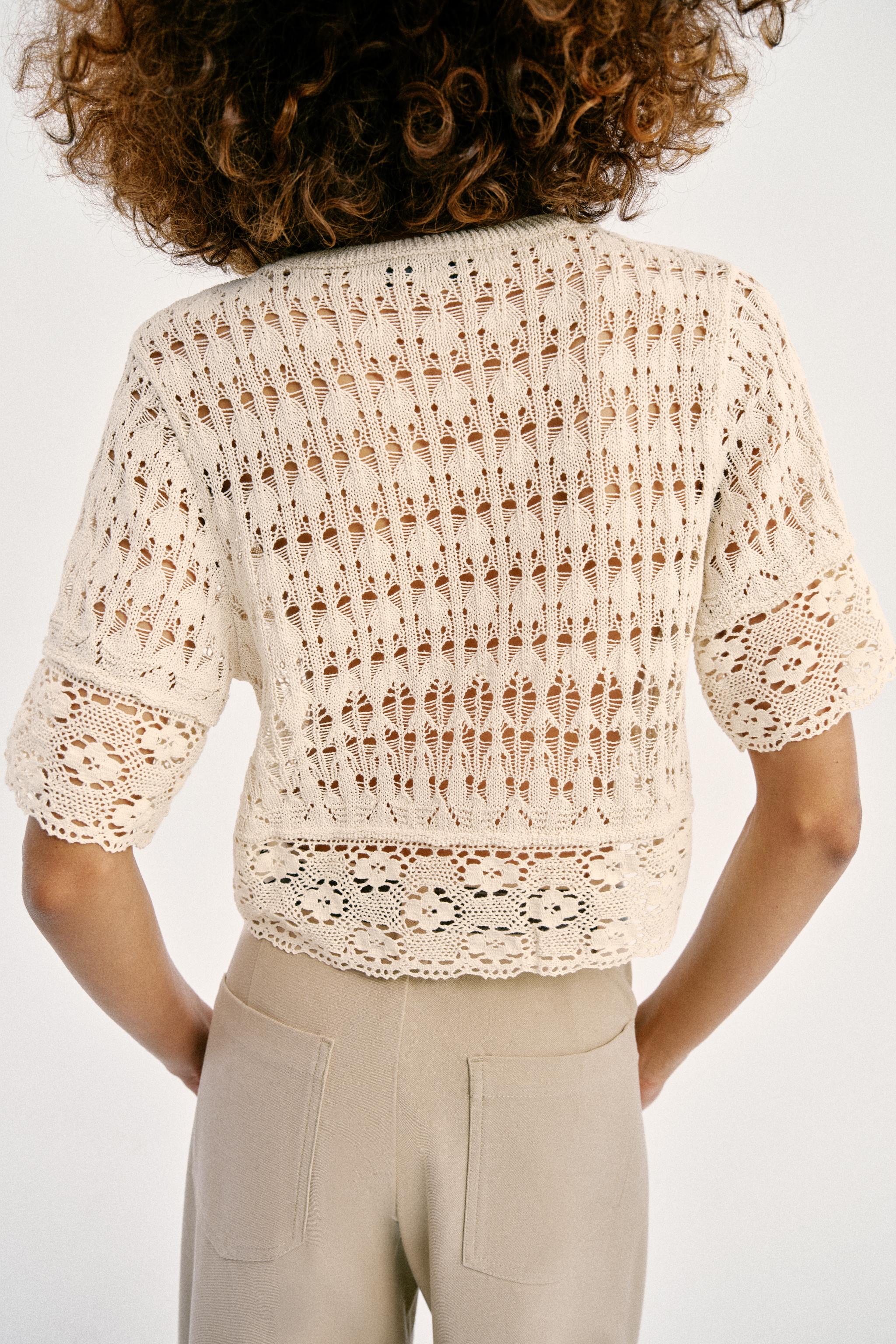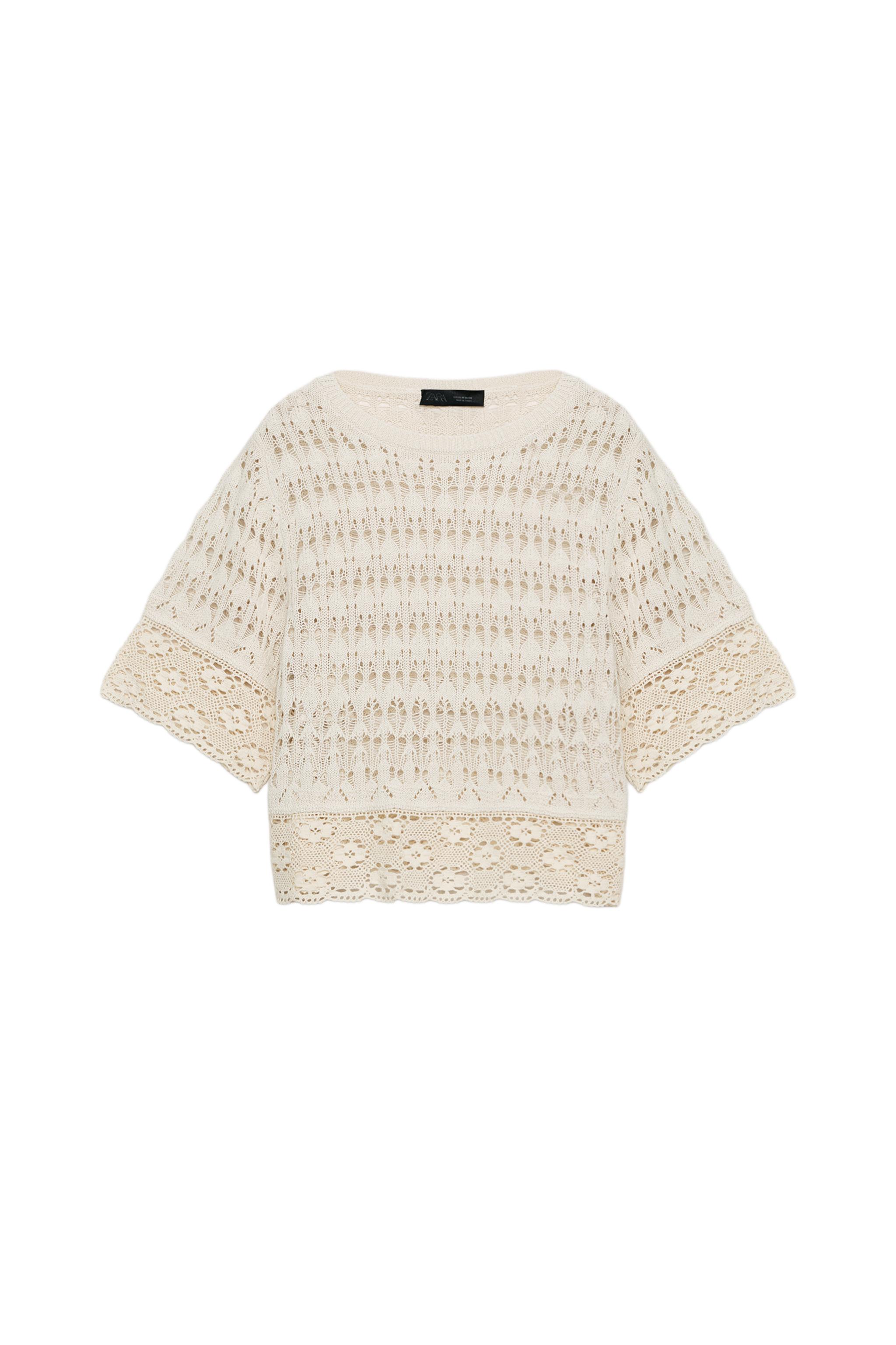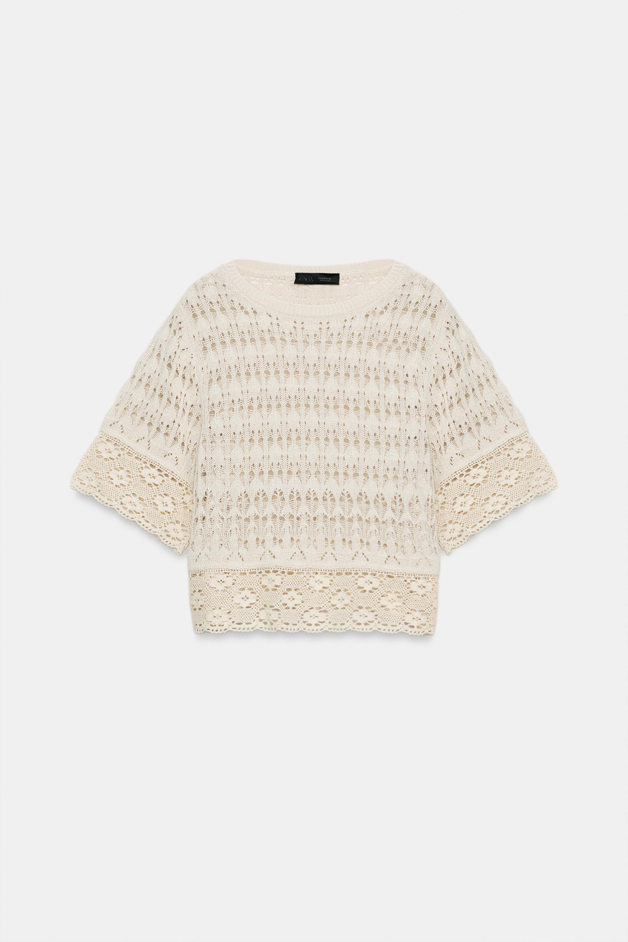 Трикотажный свитер с короткими рукавами и неправильной рукавой