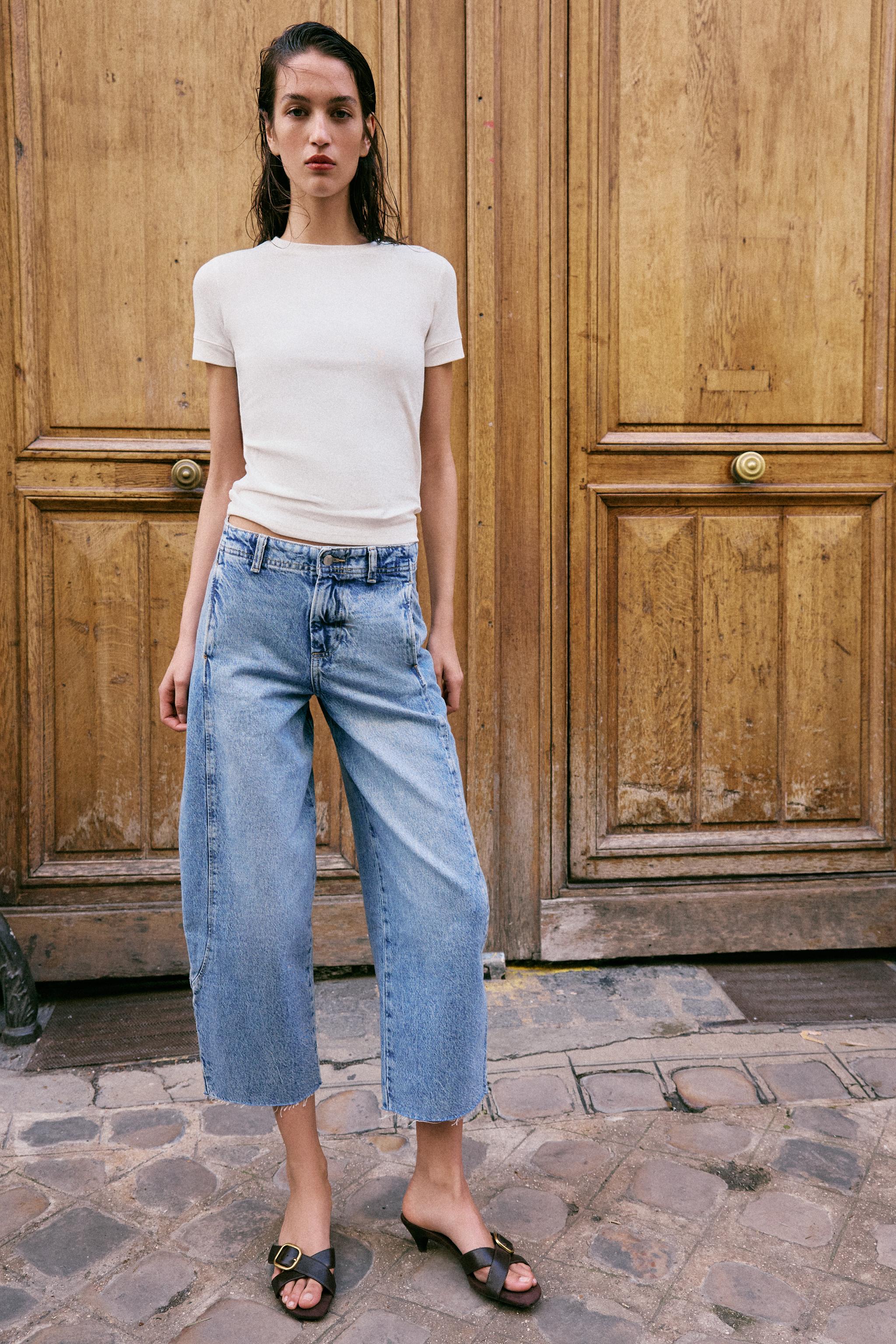 Укороченные джинсы z1975 barrel с высокой посадкой и отстрочкой