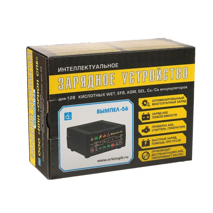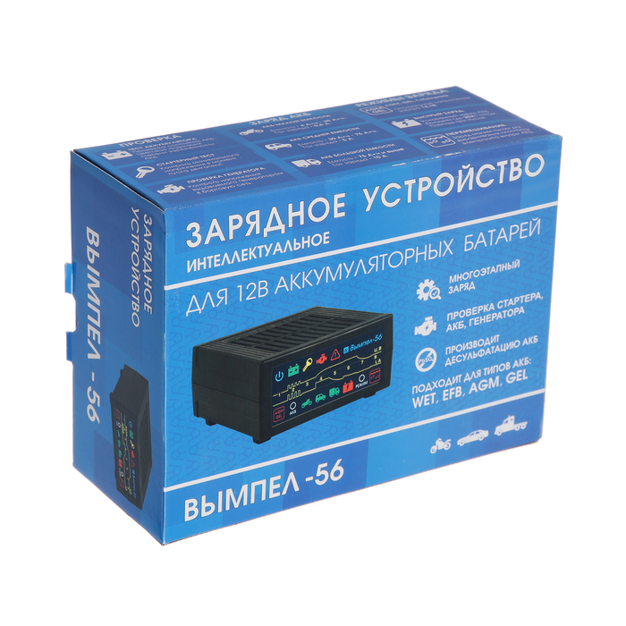 Зарядно-предпусковое устройство "Вымпел-56" с диагностикой АКБ, стартера, генератора, 20 А, 12 В, для гелевых, кислотных и AGM АКБ