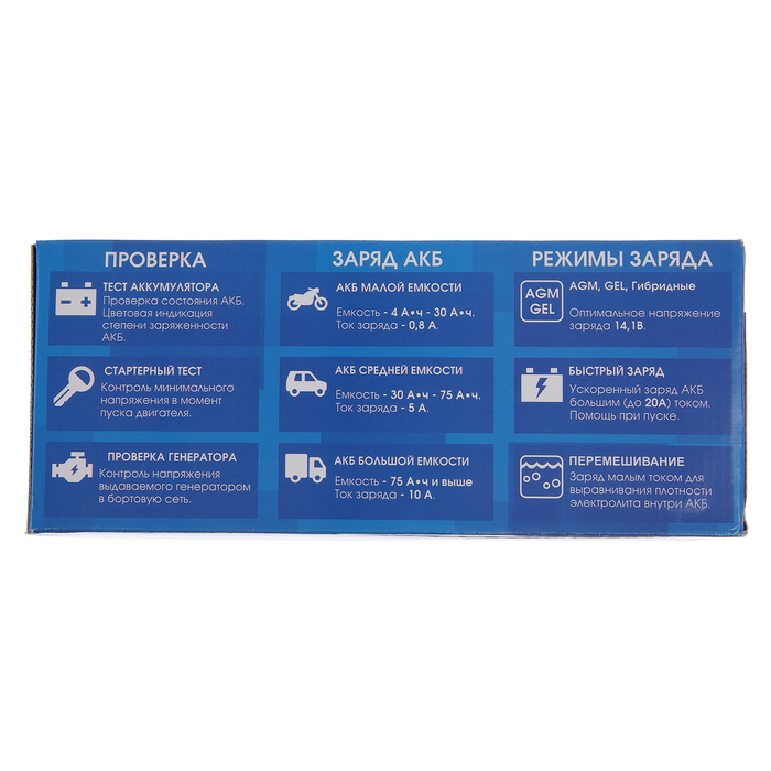 Диагностический заряд - Заряд малым током для проверки способности АКБ принимать заряд.