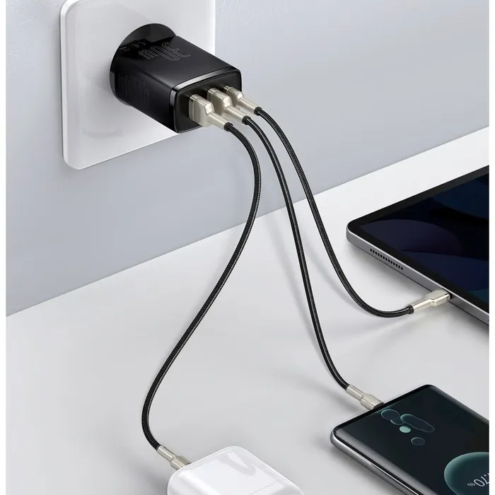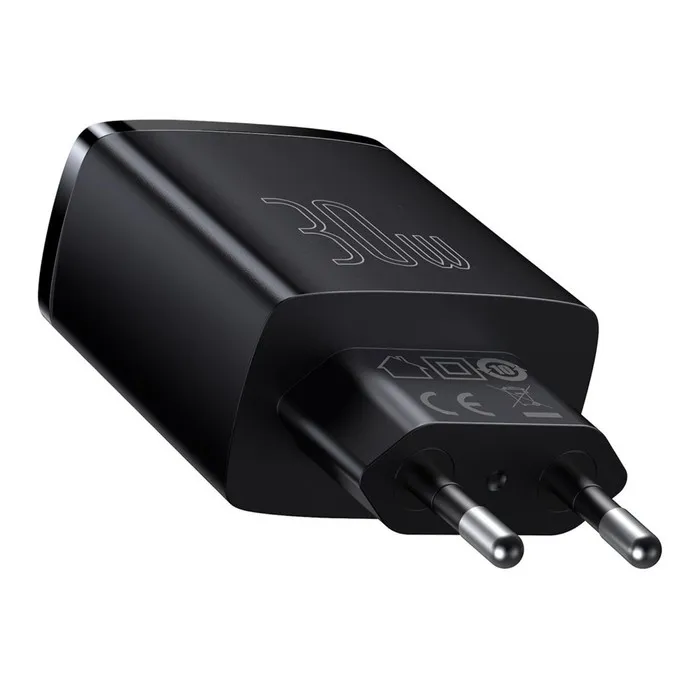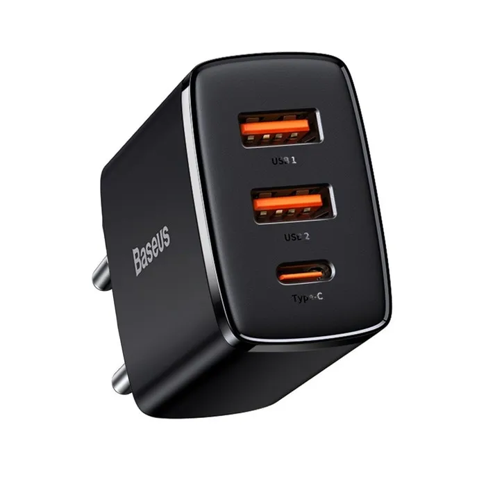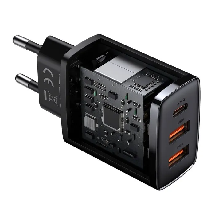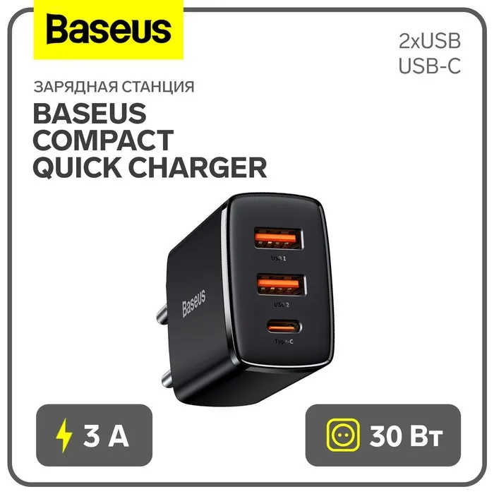 Зарядное устройство Baseus Compact Quick Charger 2*USB+USB-C, 3A, 30W, черный — Характеристики