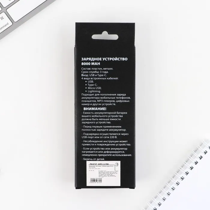 Зарядное устройство «Достояние», 8000мА,модель PB-20, 14,5 х 6,9 см — Характеристики