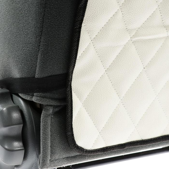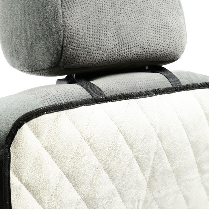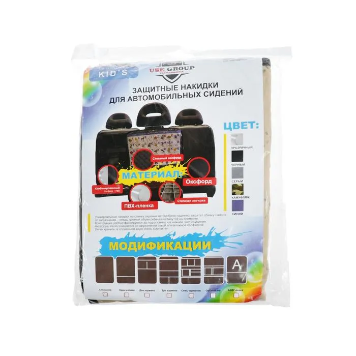 Универсальная накидка на спинку сиденья автомобиля надёжно защитят обивку салона от загрязнения - следы грязной обуви ребенка останутся на элементе. Конструкция удобно фиксируется за подголовник и в нижней части сидения. Аксессуар легко очищается от загрязнения сухой или влажной салфеткой. Легко хранить, в сложенном виде очень компактен.