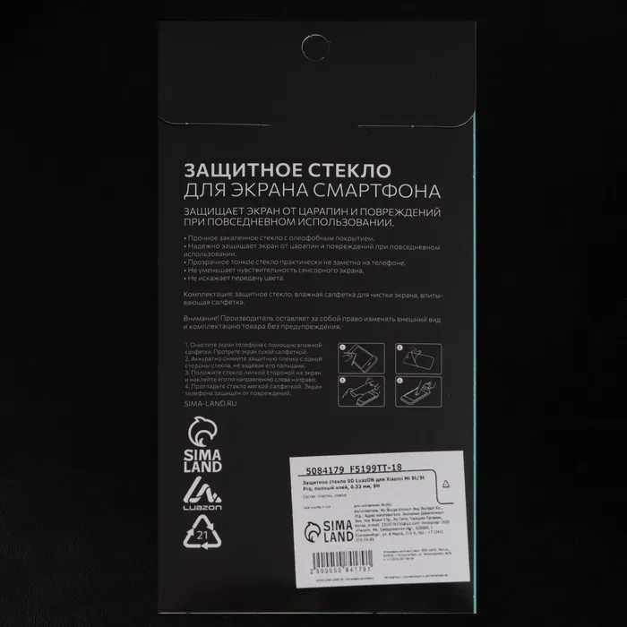 Защитное стекло 9D LuazON для Xiaomi Mi 9t/9t Pro, полный клей, 0.33 мм, 9Н, черное — Характеристики