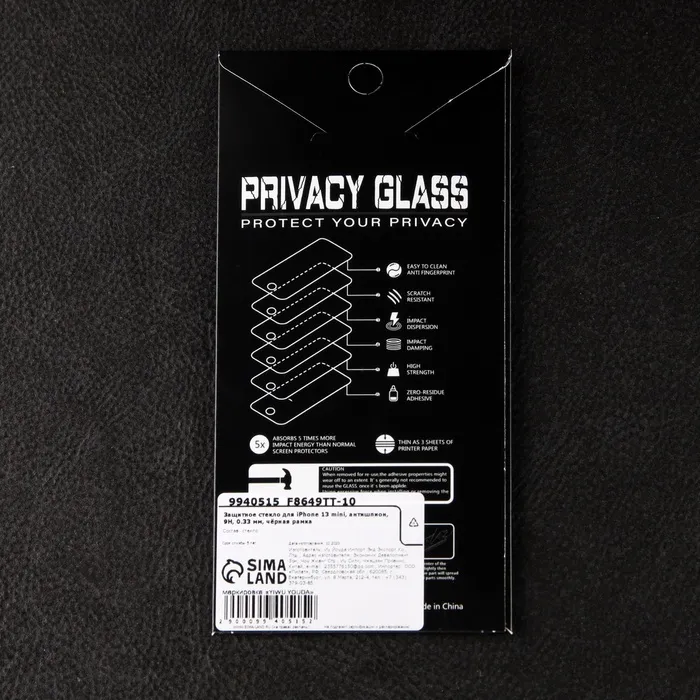 Защитное стекло для iPhone 13 mini, антишпион, 9H, 0.33 мм, чёрная рамка — Характеристики