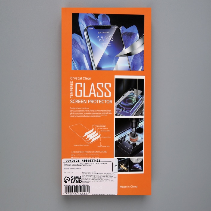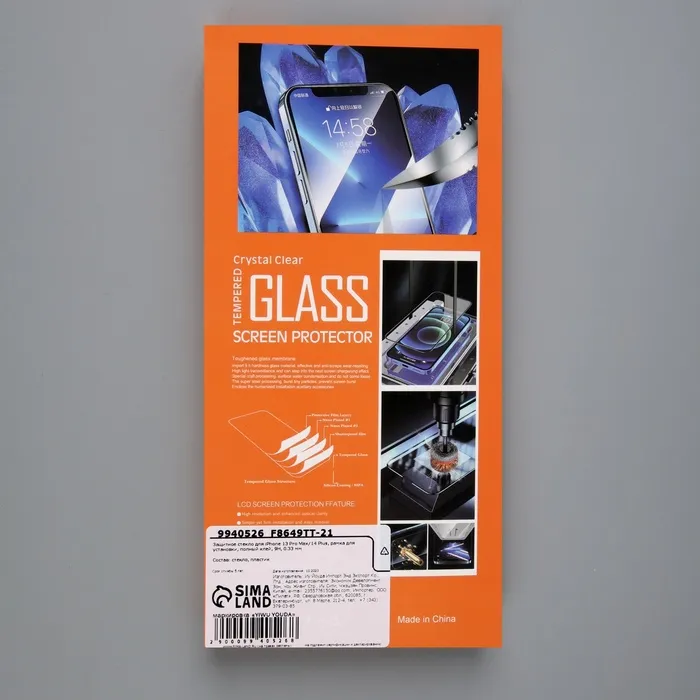 Защитное стекло для iPhone 13 Pro Max/14 Plus, рамка для установки, полный клей, 9H, 0.33 мм — Характеристики