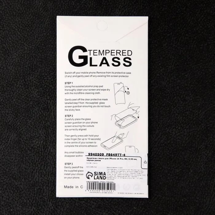 Защитное стекло для iPhone 14 Pro, 9H, 0.33 мм, чёрная рамка — Характеристики