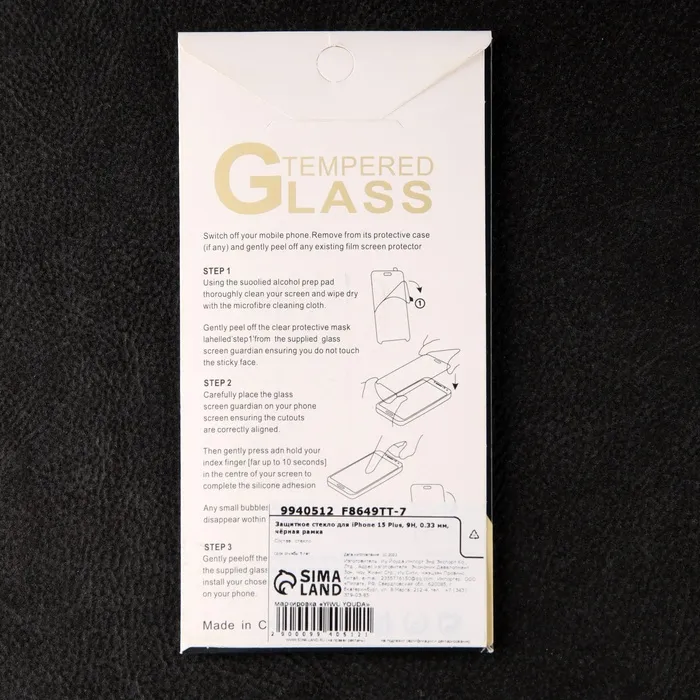 Защитное стекло для iPhone 15 Plus / 16 Plus, 9H, 0.33 мм, чёрная рамка — Характеристики