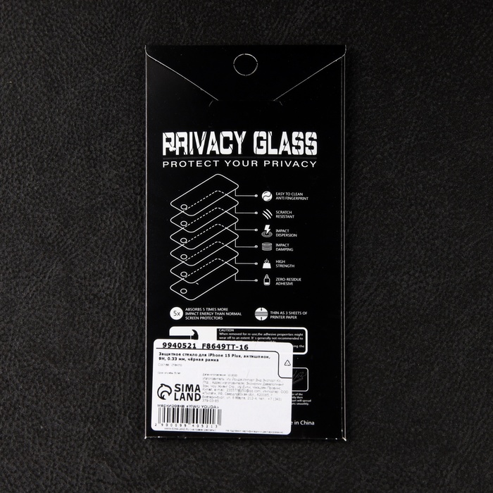Защитное стекло для iPhone 15 Plus / 16 Plus, антишпион, 9H, 0.33 мм, чёрная рамка — Характеристики
