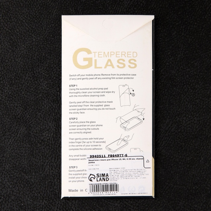 Защитное стекло для iPhone 15/16, 9H, 0.33 мм, чёрная рамка — Характеристики