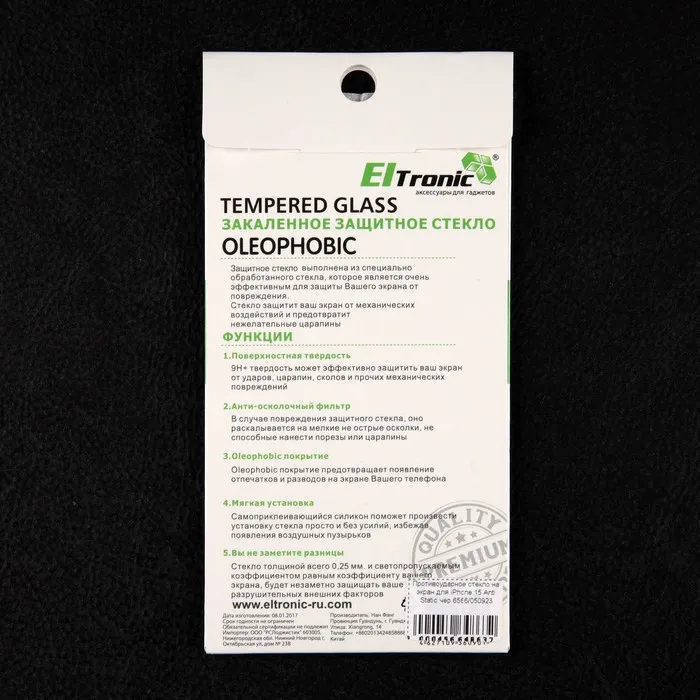 Защитное стекло Eltronic, для iPhone 15, противоударное, черное — Характеристики