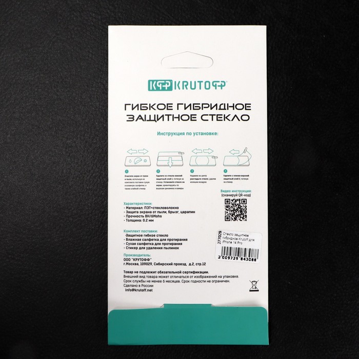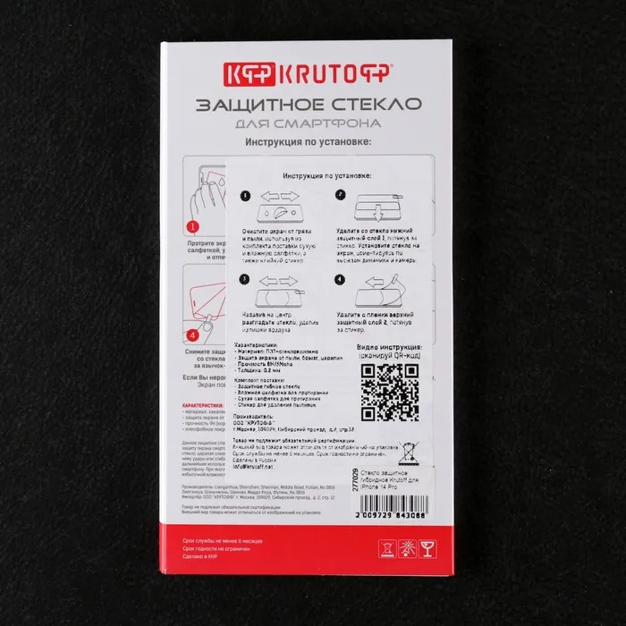 Защитное стекло Krutoff для iPhone 14 Pro, гибридное, полный клей — Характеристики