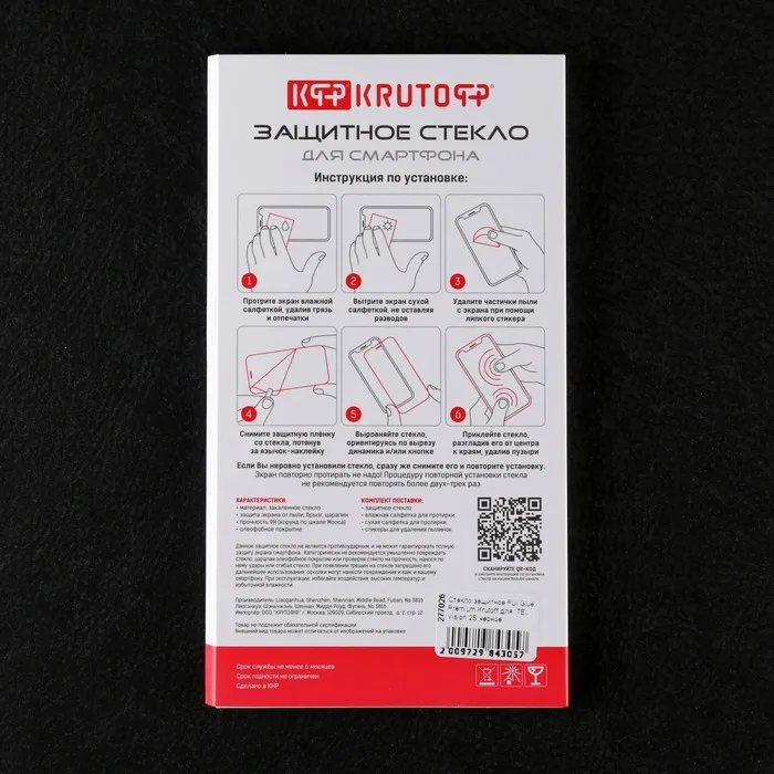 Защитное стекло Krutoff для ITEL Vision 2S, полный клей, черное — Характеристики