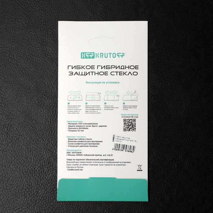 Защитное стекло Krutoff, для Itel Vision 3, гибридное, гибкое, полный клей — Характеристики