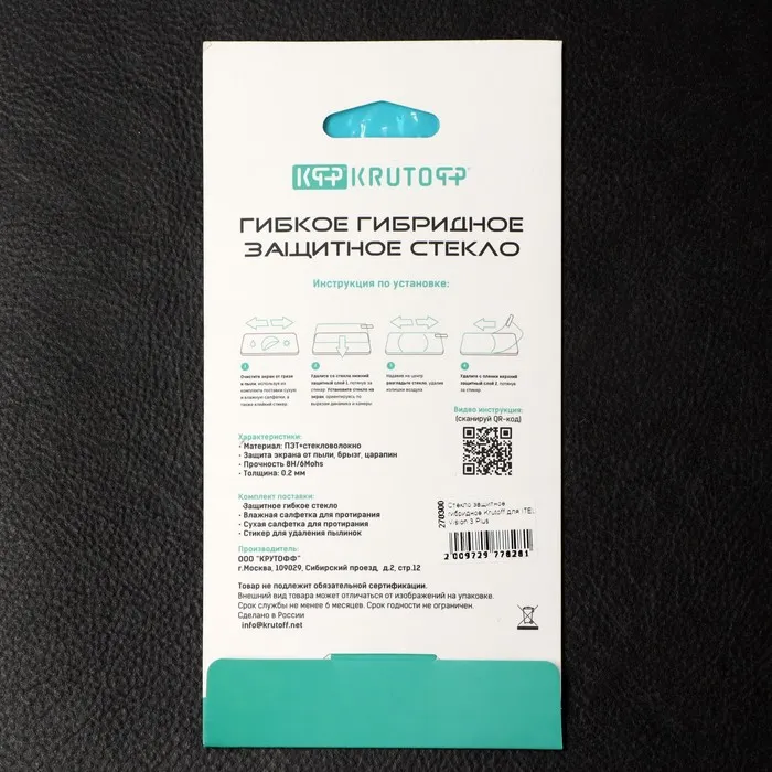 Защитное стекло Krutoff, для Itel Vision 3 Plus, гибридное, гибкое, полный клей — Характеристики