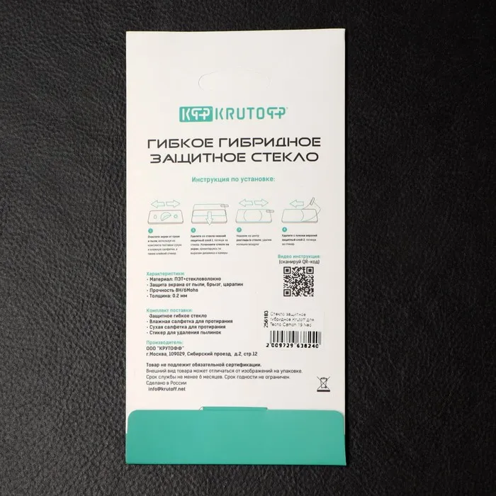 Защитное стекло Krutoff, для Tecno Camon 19 Neo, гибридное, гибкое, полный клей — Характеристики