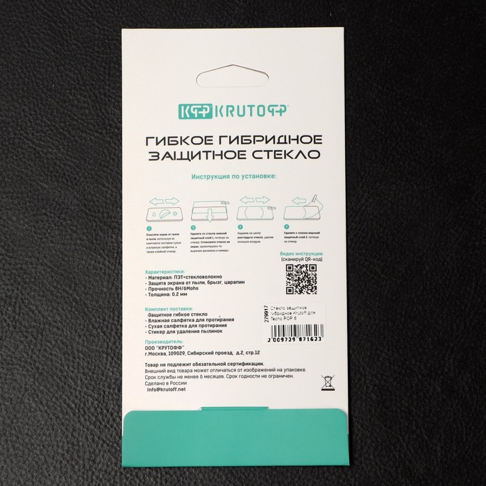Защитное стекло Krutoff, для Tecno POP 6, гибридное, гибкое, полный клей — Характеристики
